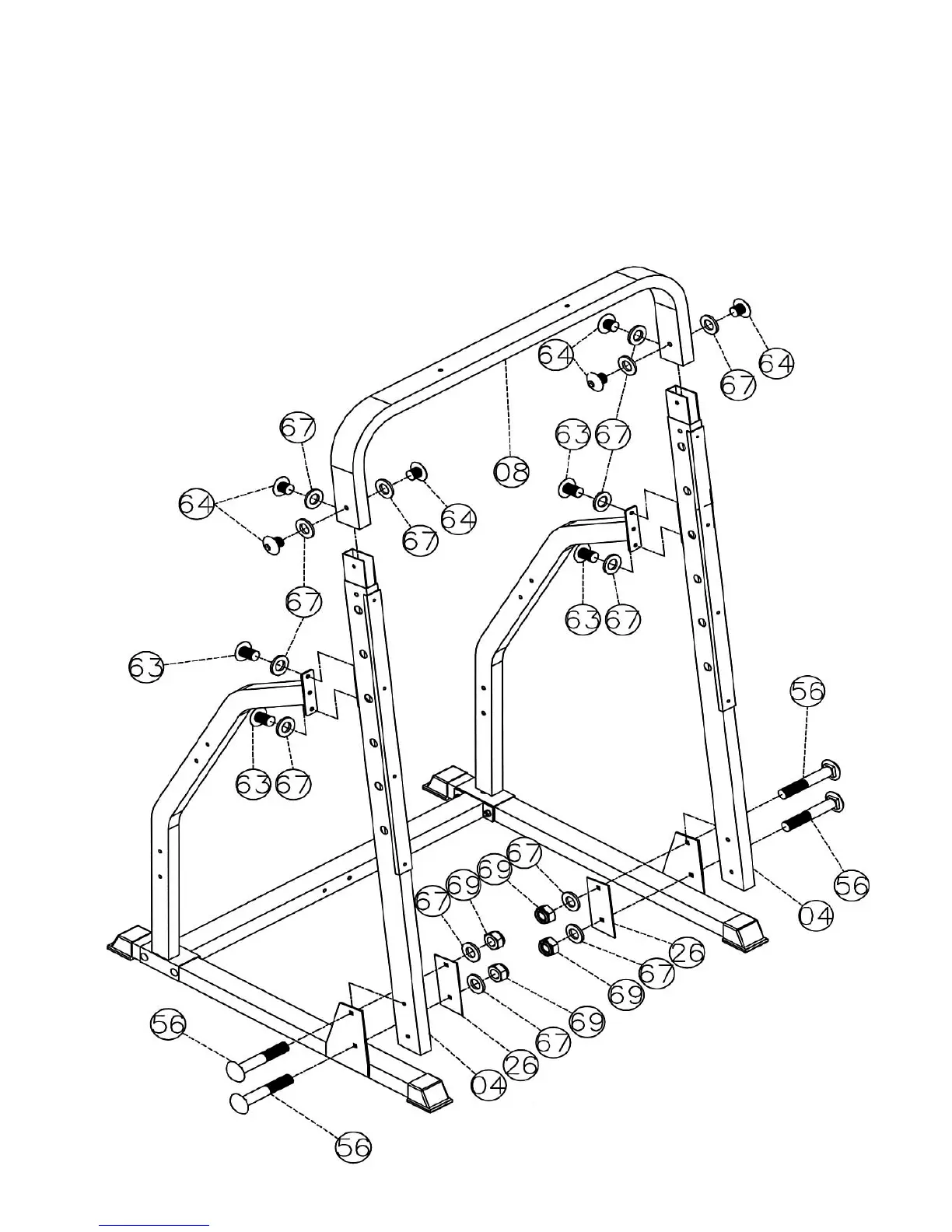 B.) Secure the Upright Beam to the Right Support with two M10 x ¾” Allen Bolts (#63) and two