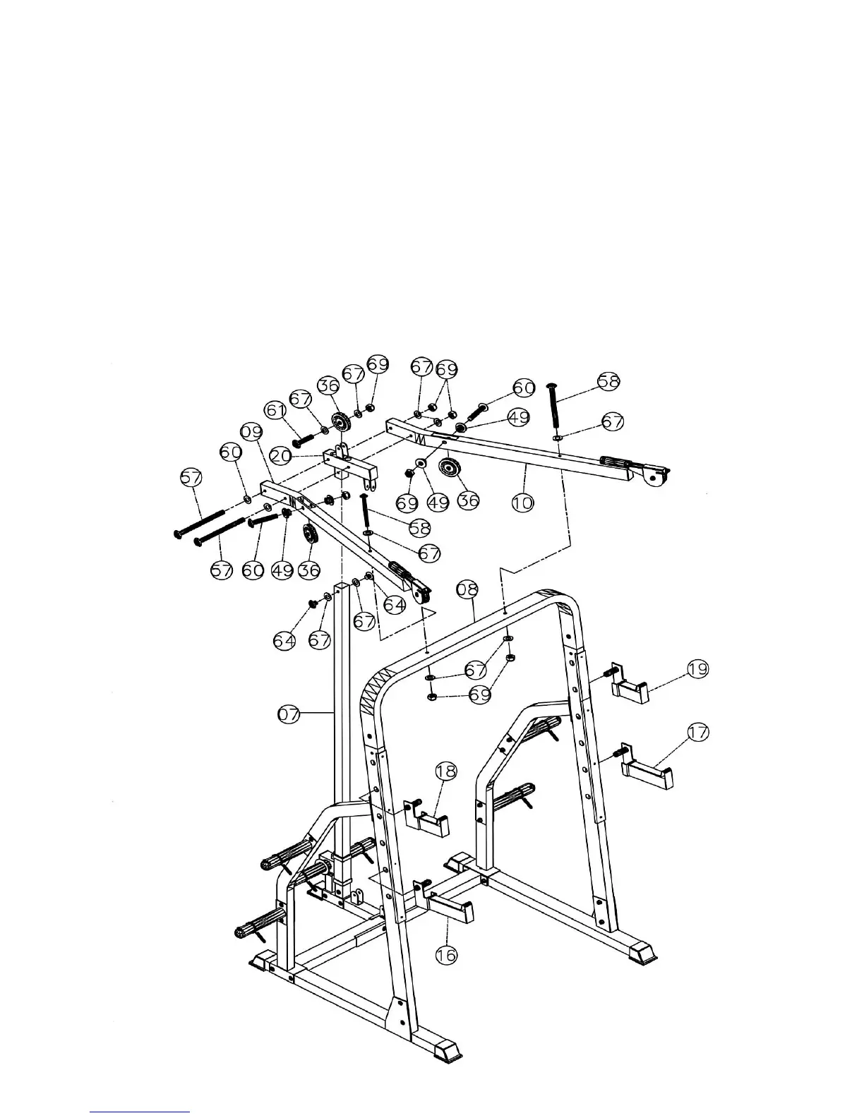 C.) Secure each Lat Bar Frame to the Upper Frame (#8) with one M10 x 4 ½” Allen Bolt (#58), two