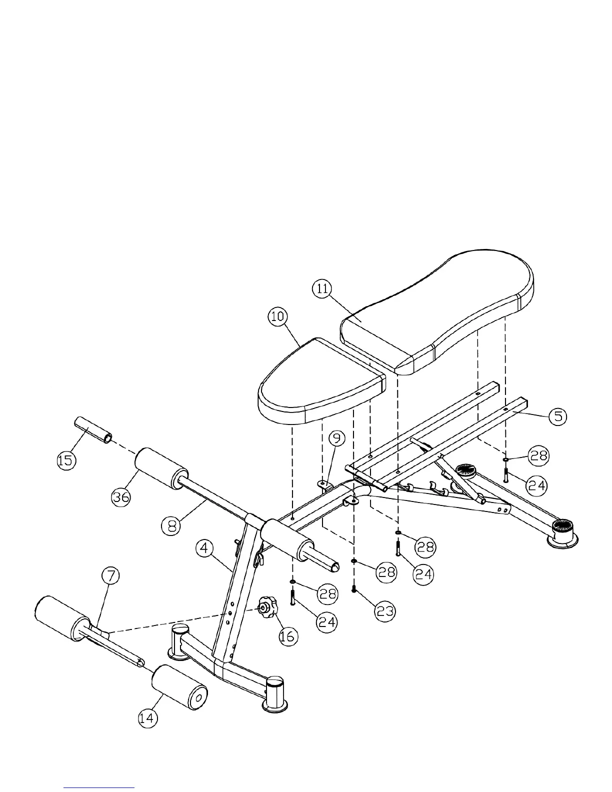 with two M8 x 5/8” Allen Bolts (#23) and Ø 5/8” Washers (#28). Secure the Seat to the Main