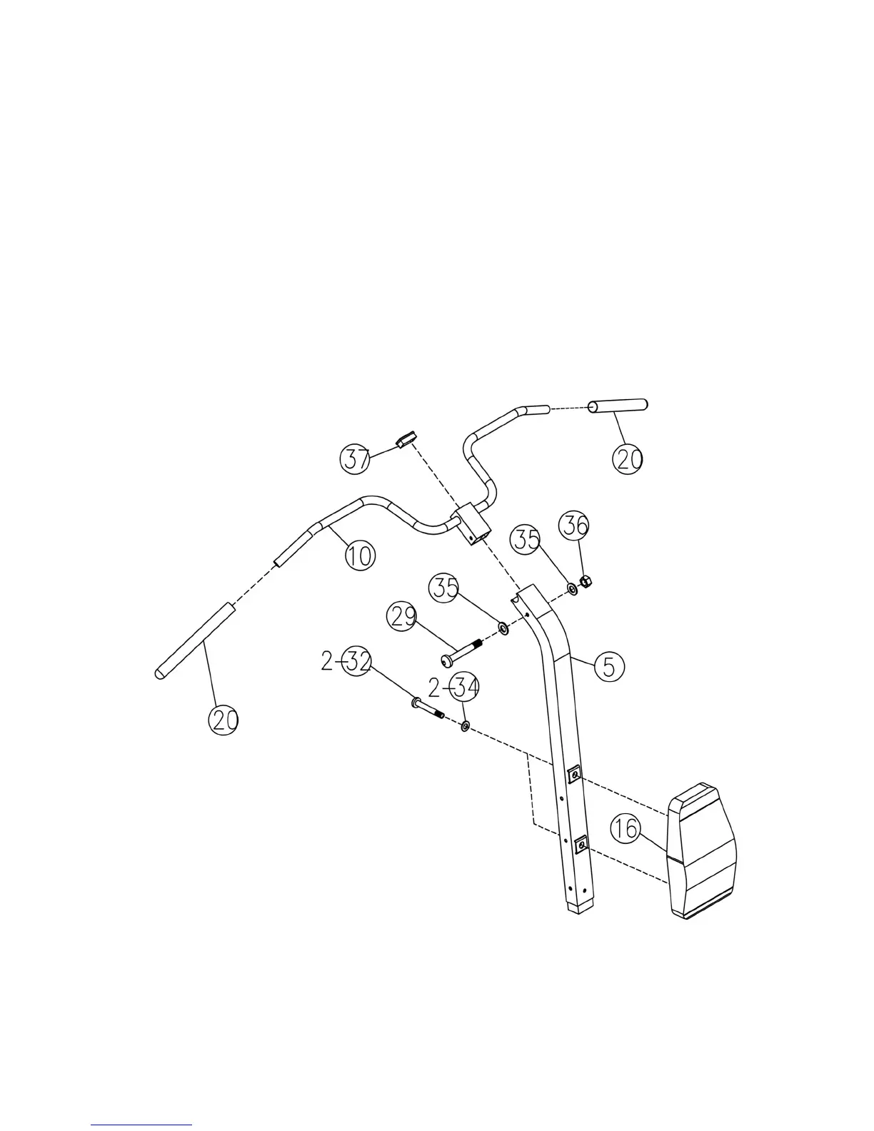Bolts (#32) and ∅ 5/8” Washers (#34).