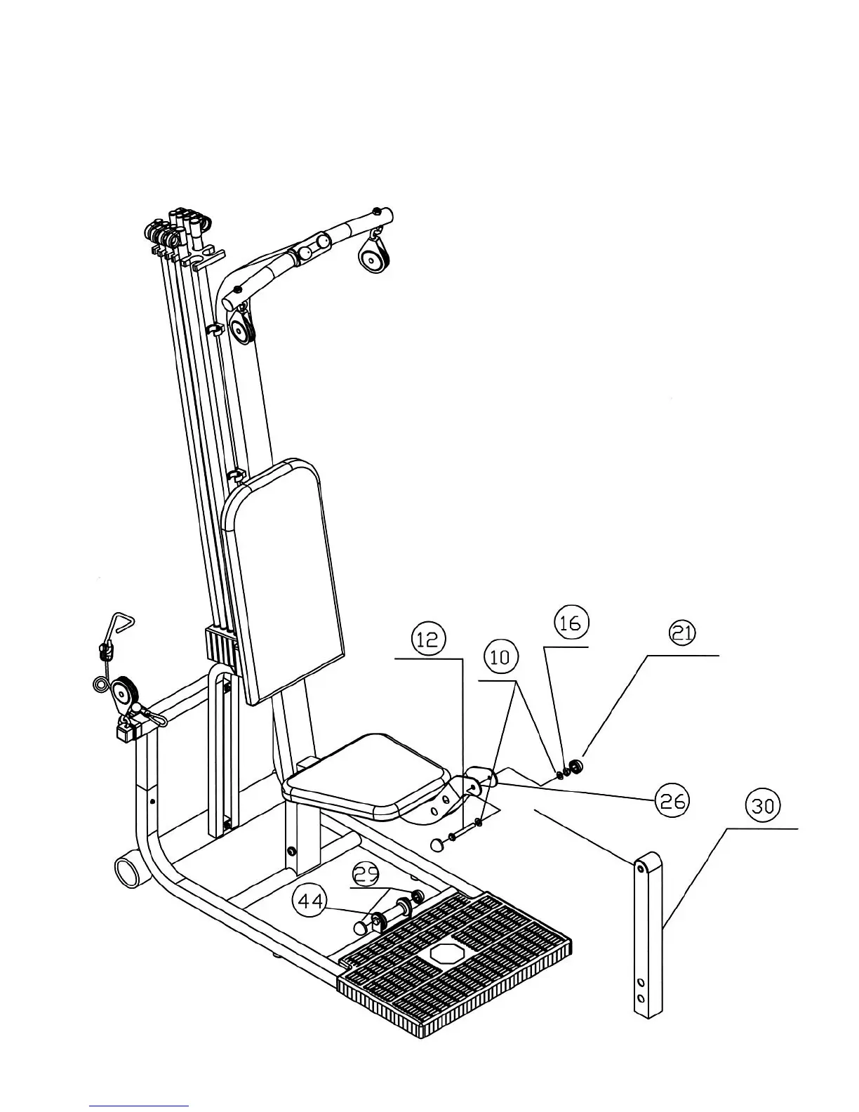 A.) Attach the Leg Developer (#30) to the front of Seat Support (#26). Secure it with one