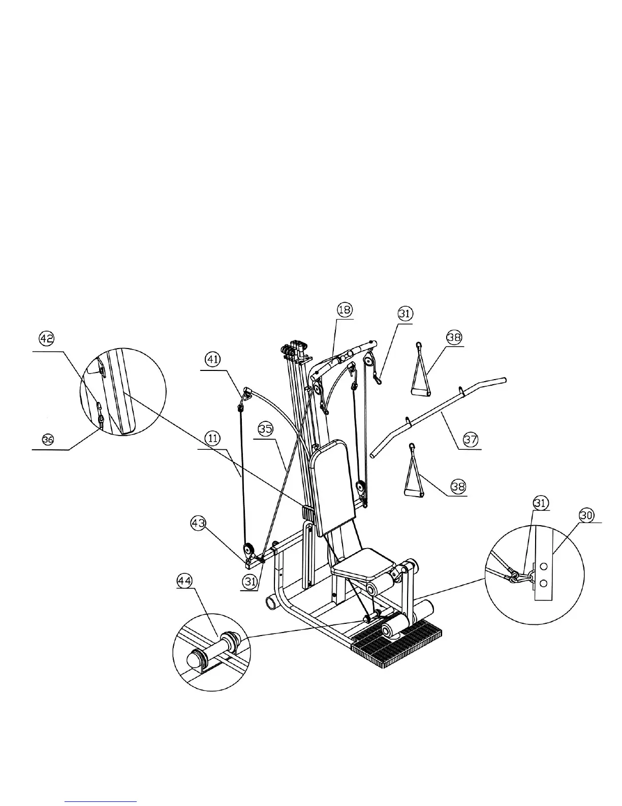 D.) Connect the Lat Bar (#37) or two Hand Straps (#38) to the End Hooks (#31) on the two Lat
