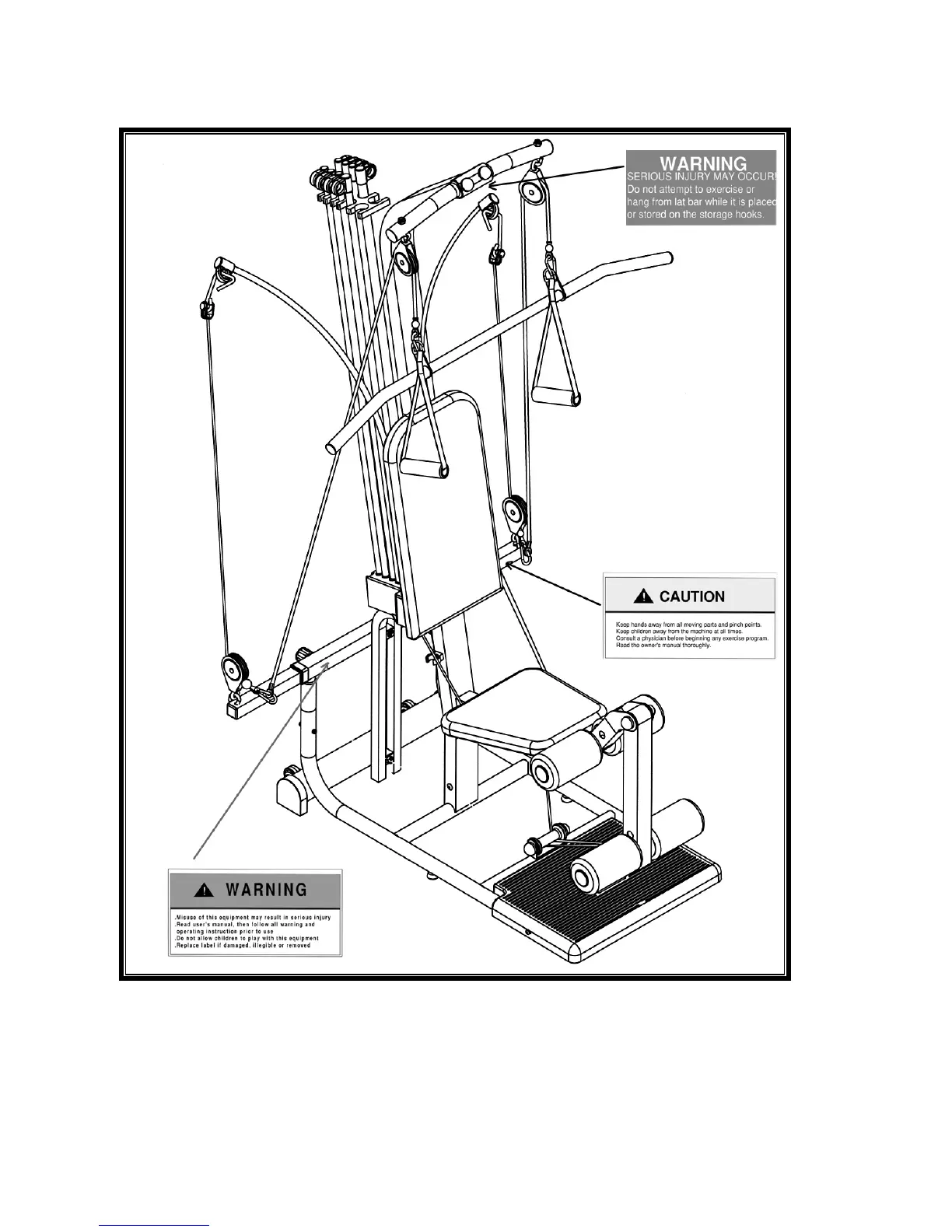 The Warning Labels shown here have been placed on Lower Pulley Support Base.