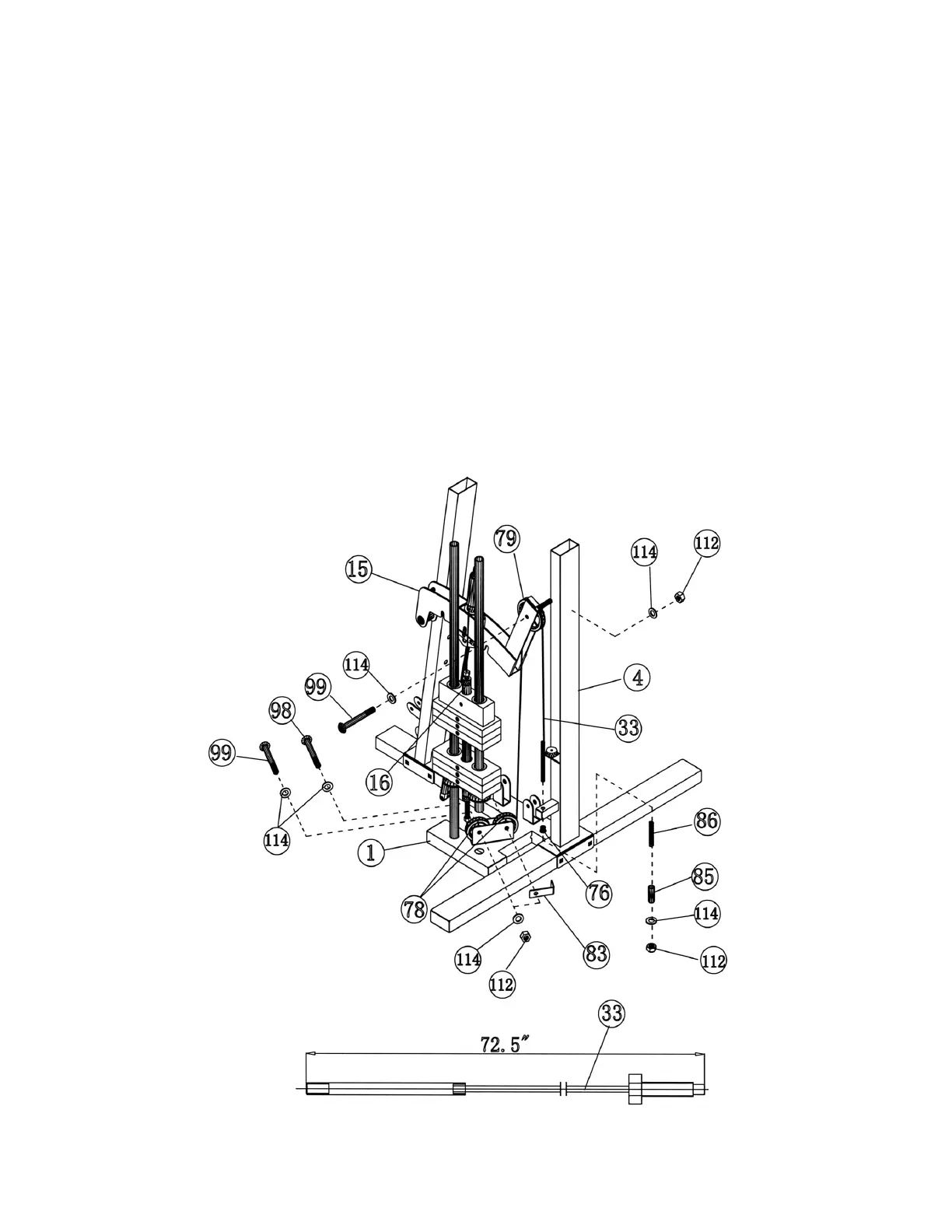 Install a Small Pulley (#78). Secure it with one M10 x 2” Allen Bolt (#98), two ∅ ¾” Washers