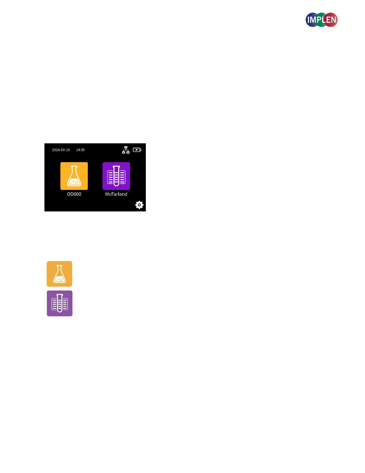is equipped with pre-programmed applications, the OD600 and McFarland methods. To select an