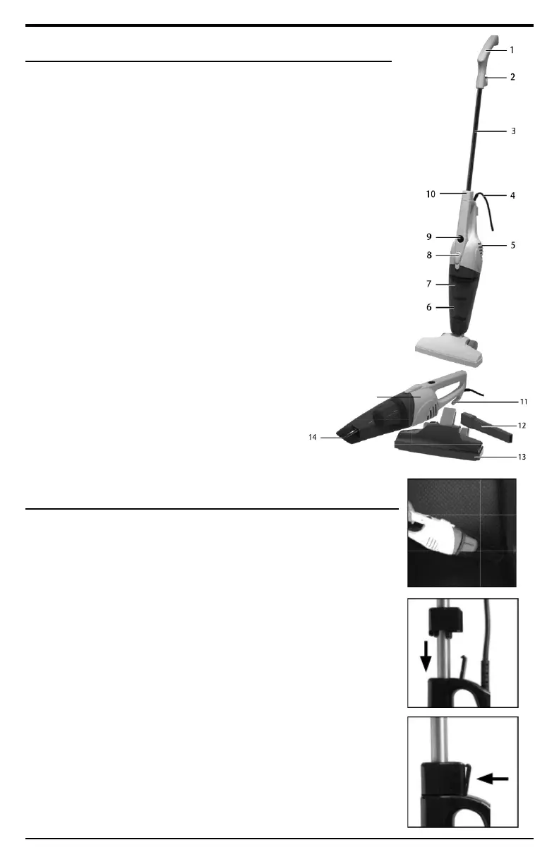 2. Introducir el conector del mango de la barra dentro de la abertura de la aspiradora.