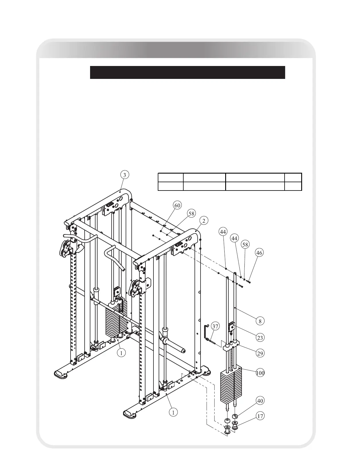 thirty-two 10lbs Weight Plate (#100), two Top Plate (#29), four Weight Stack Space