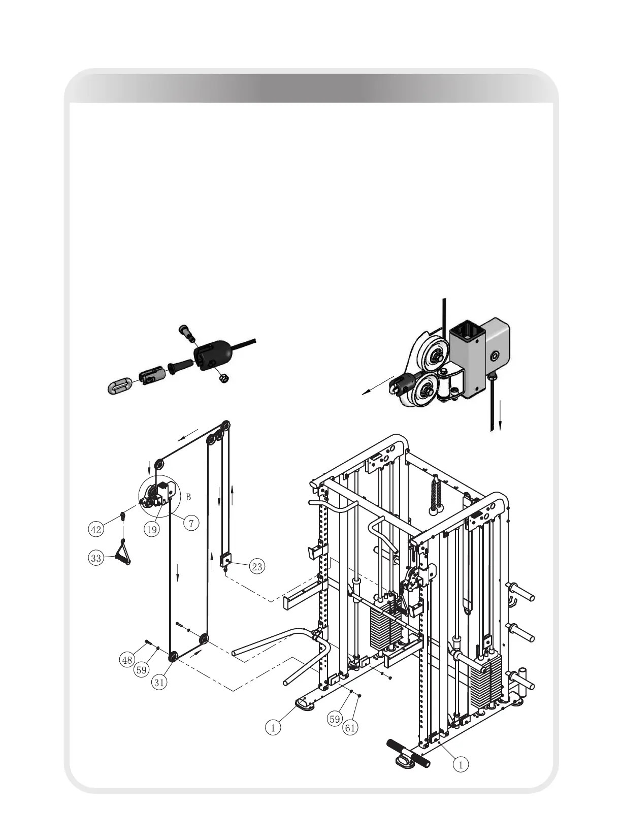 2. Attach two D-Strap (#33) to two Cable ASSY (#7), using:
