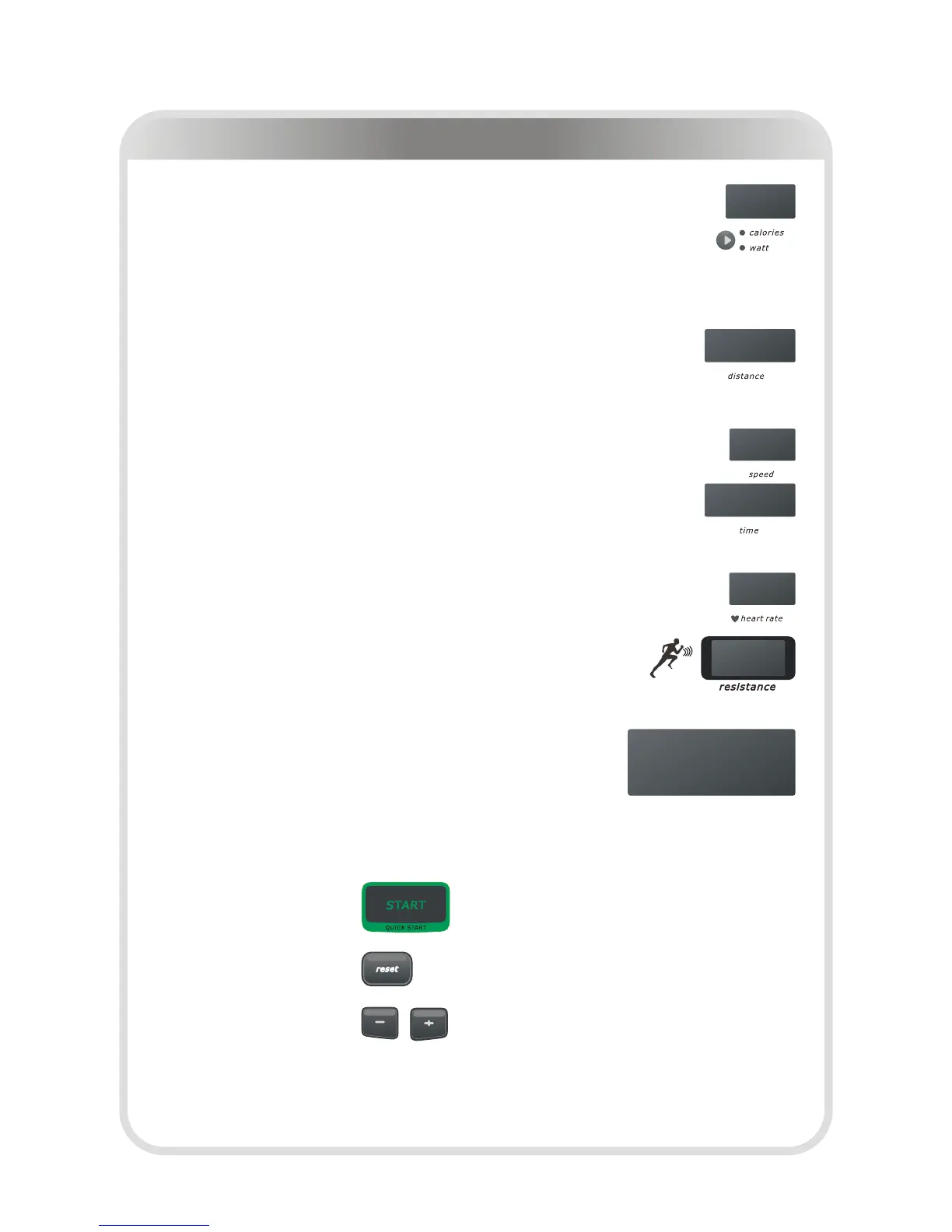 These buttons are used to adjust the degree of Resistance of the machine during