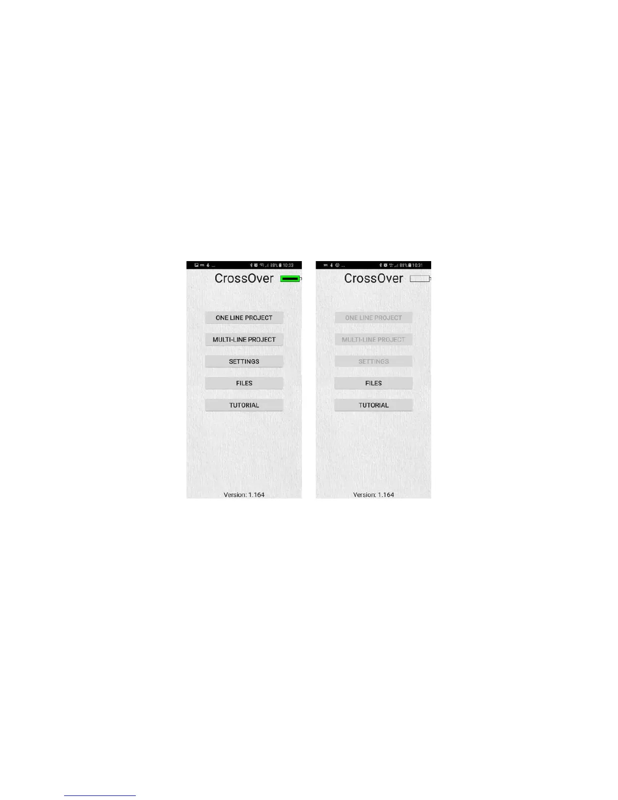 Figure 11 CrossOver® start screen. Right: not connected device.