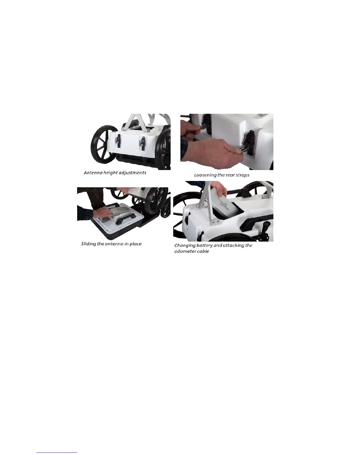 To measure distance, the push-cart incorporates an odometer encoder that links to the antenna via
