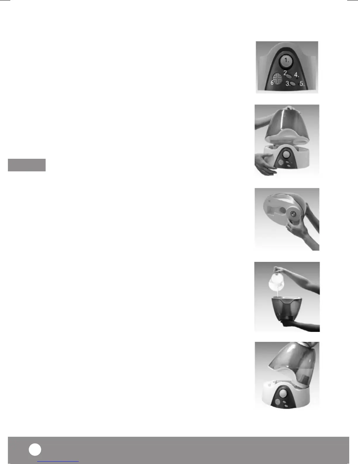 4) Remplissez le réservoir d’eau claire, distillée ou déminéralisée à 40°C