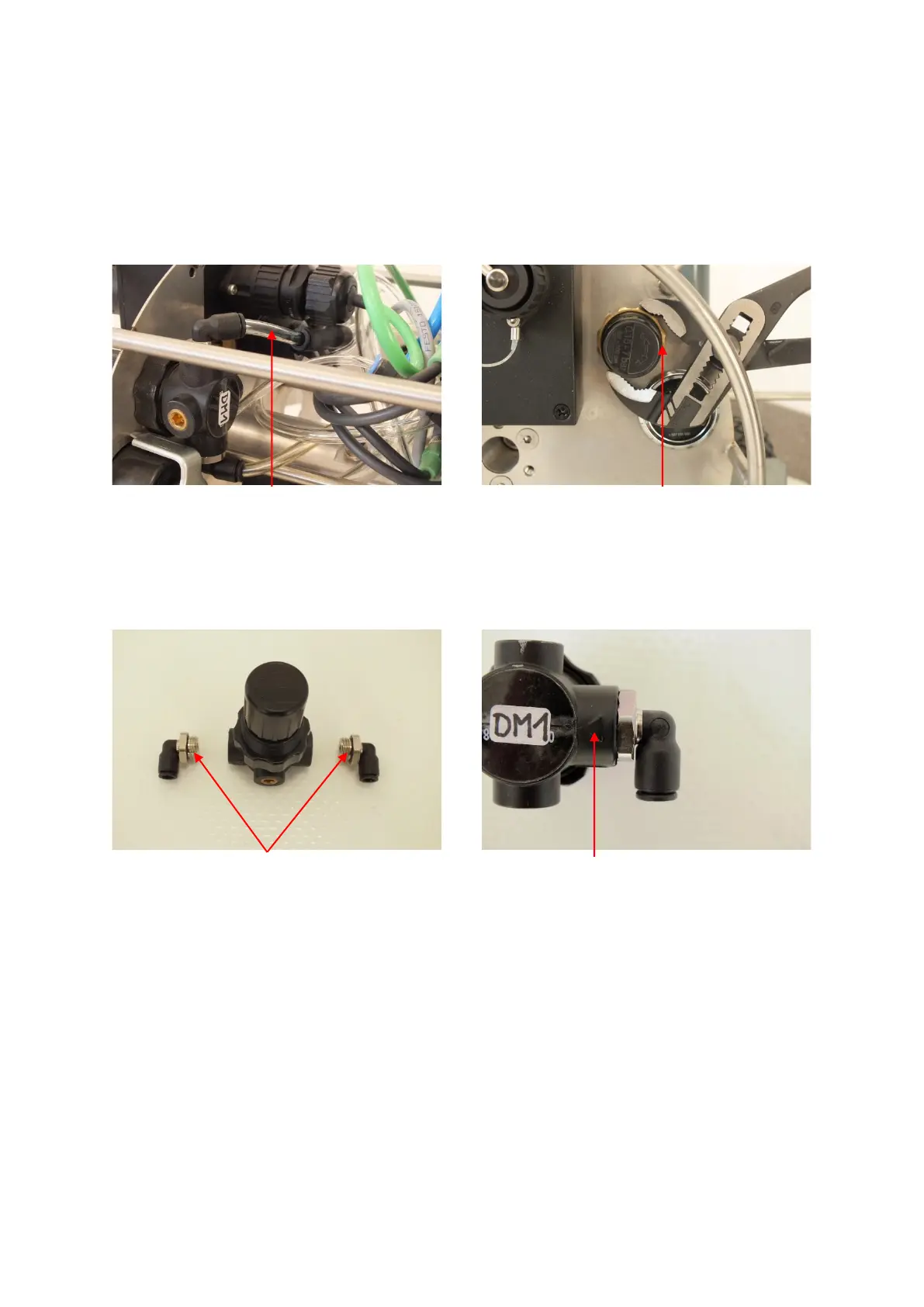 Unscrew the angular fittings, replace the pressure reducer and label it with DM1. Screw in