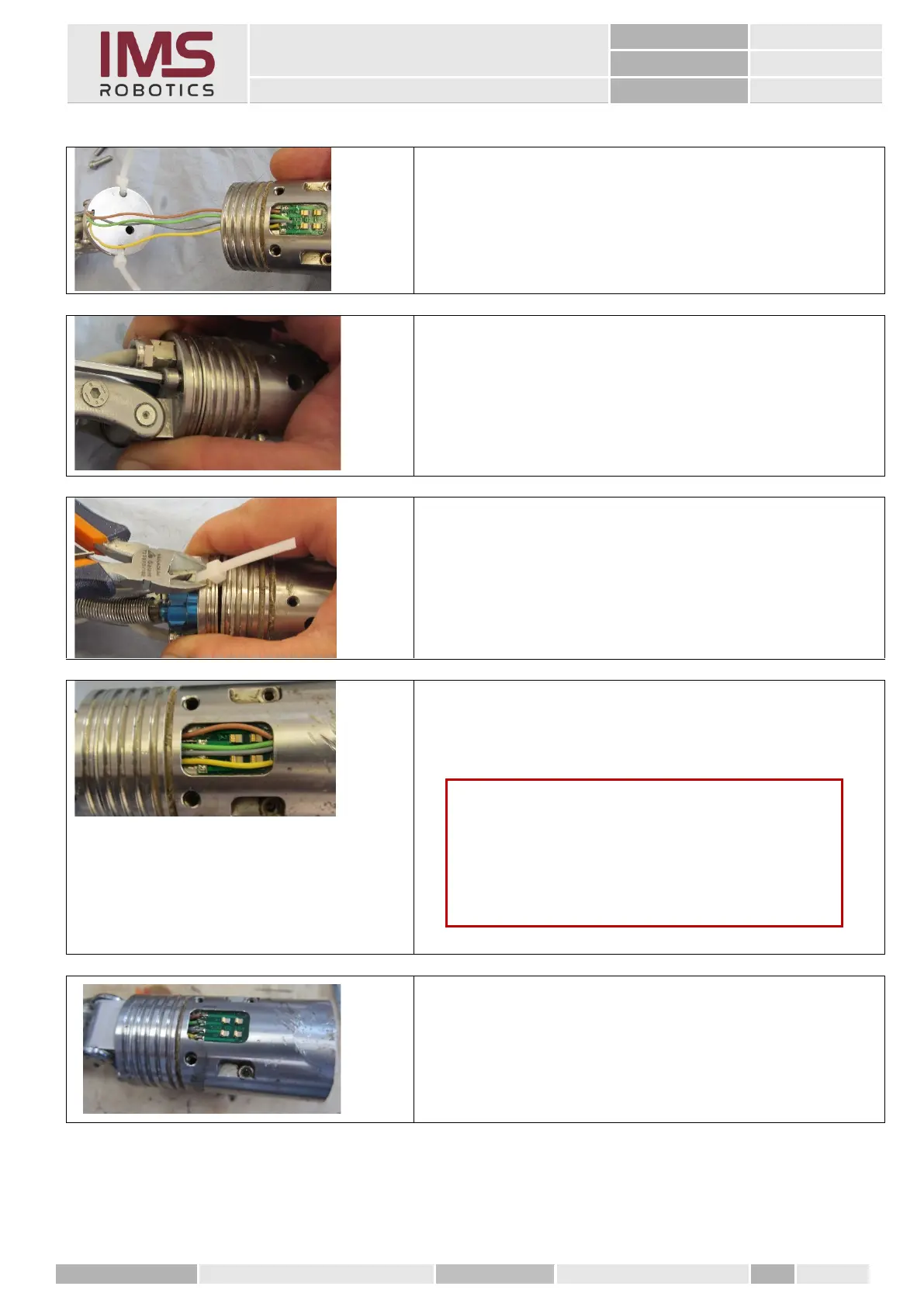 hand, cut and remove a cable tie and fix the three parts.