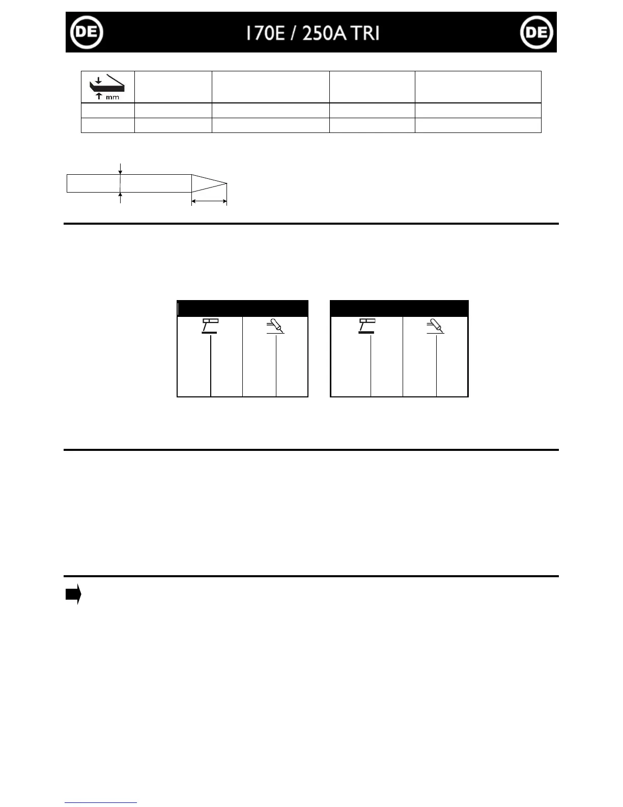 • Beachten Sie die Angaben auf der Elektrodenverpackung für Schweißstrom und Polarität.