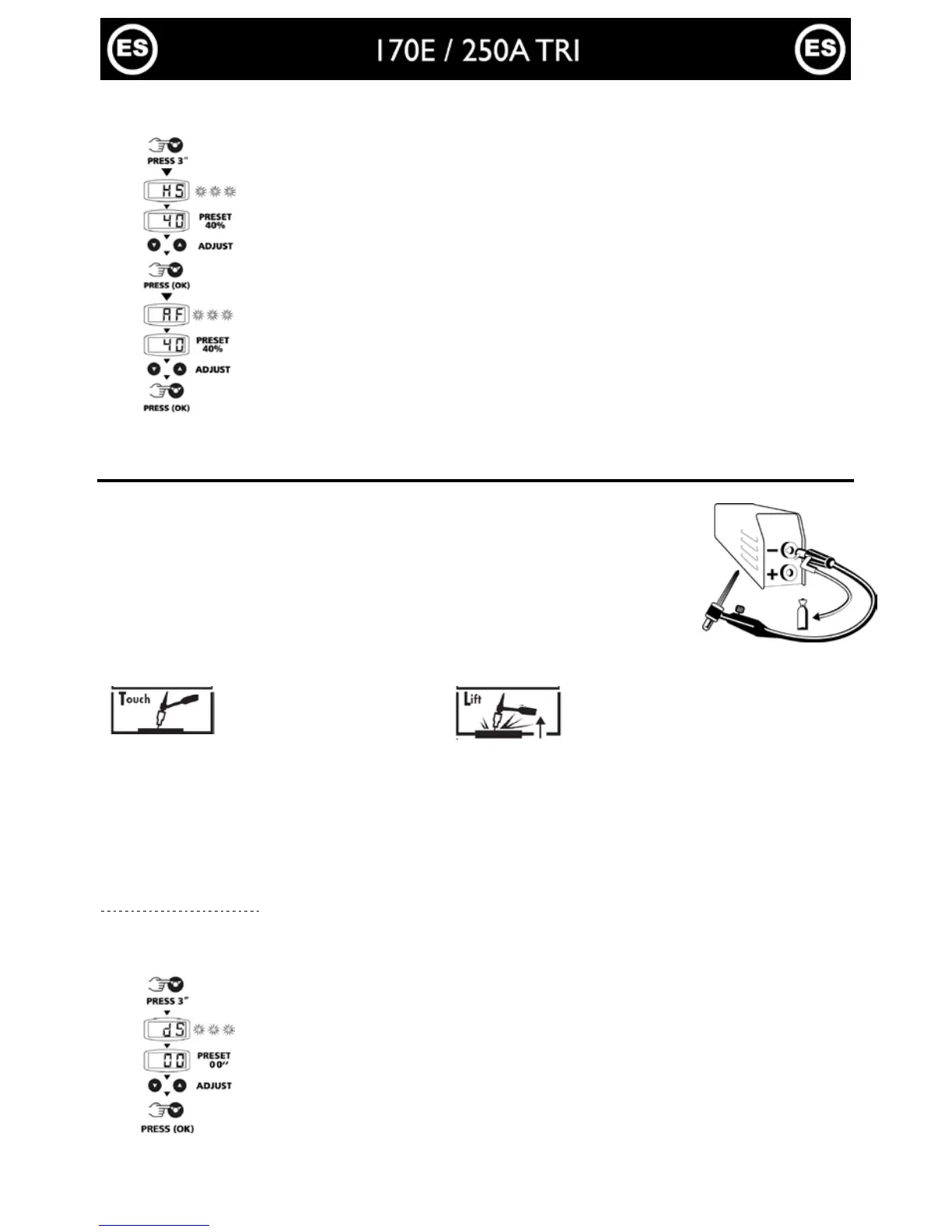 Para regular el Hot Start & Arc Force, seguir las etapas siguientes: