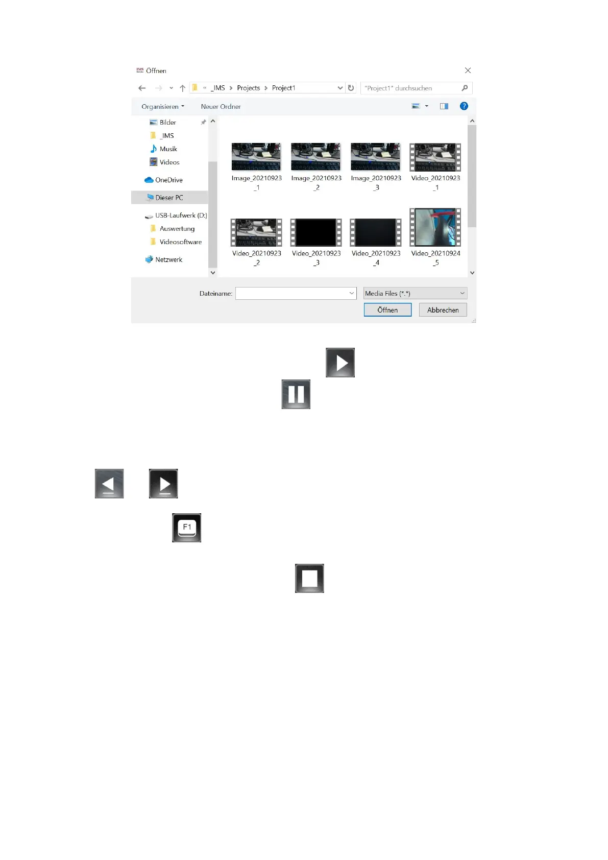 The loaded video file can now be started using the icon. The icon is now displayed in