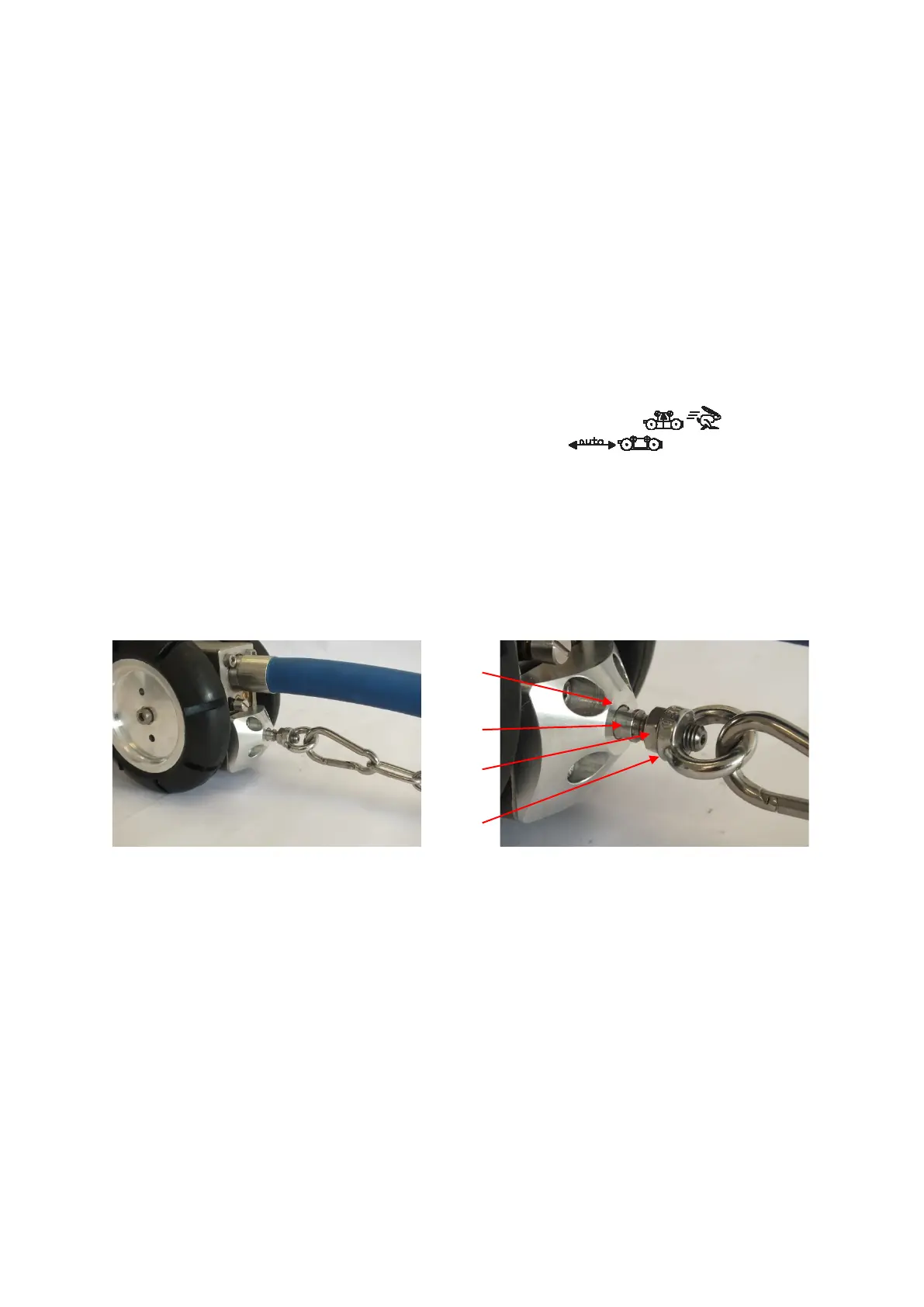 drive backwards. The hinged carabiner with chain serves as a strain relief and is necessarily