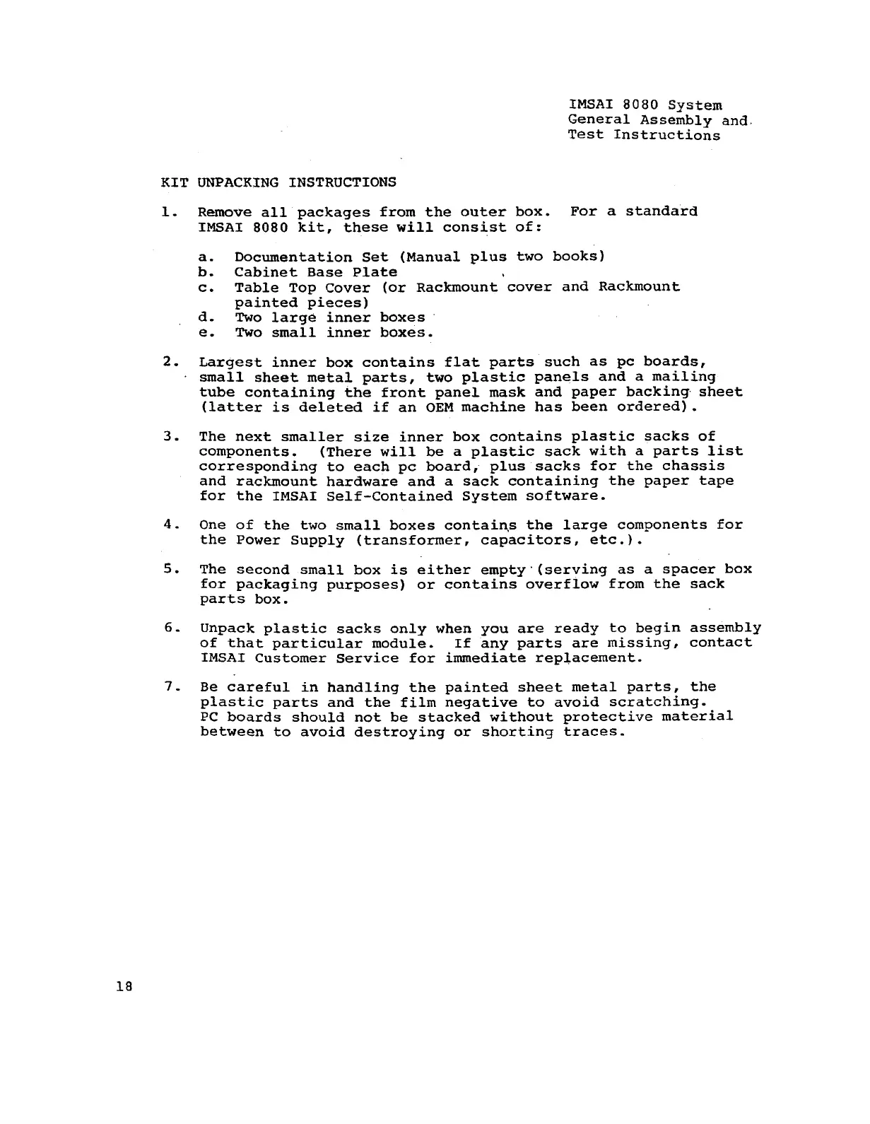 6. Unpack plastic sacks only when you are ready to begin assembly