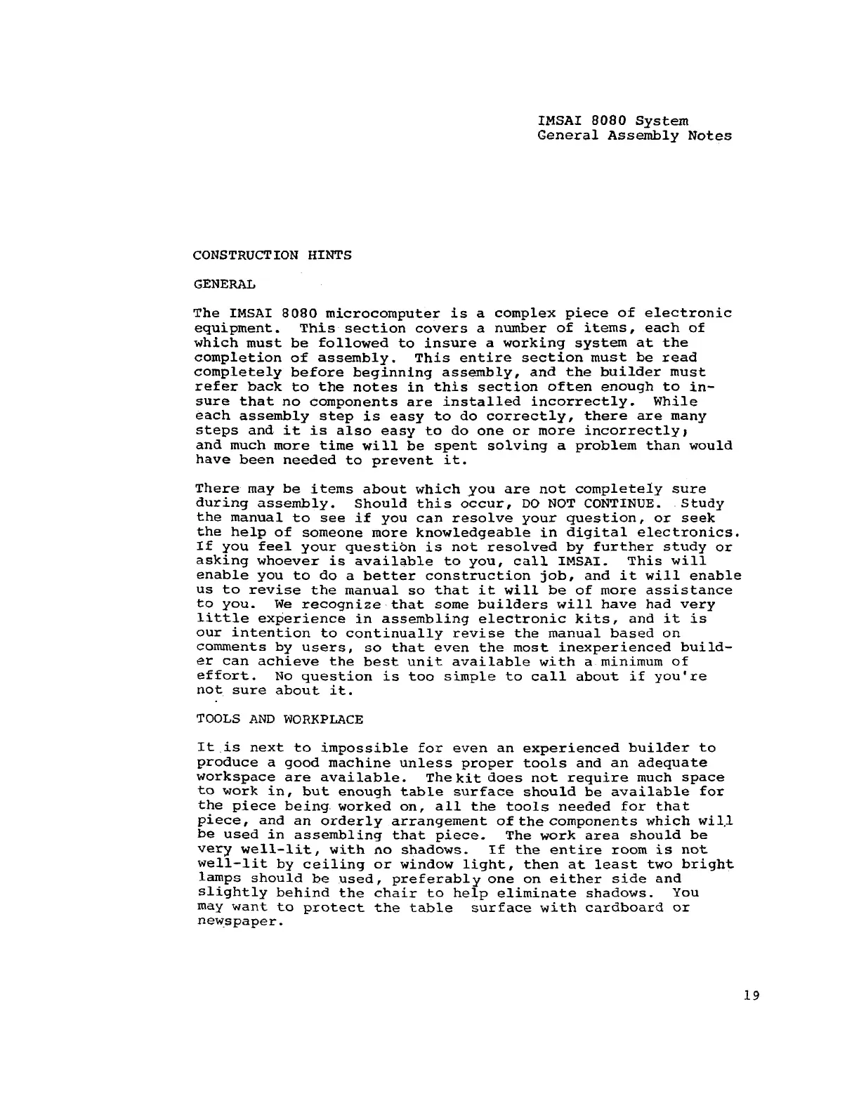 completely before beginning assembly, and the builder must
