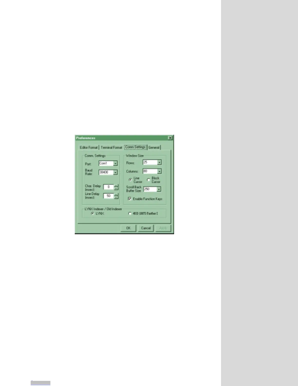 Figure 5.2: LYNX Terminal Communications Setup Window