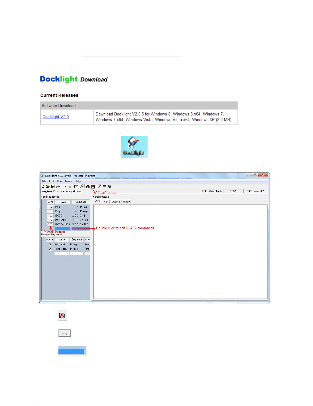 b. Choose “Docklight V2.0” to download the RS232 controling software: