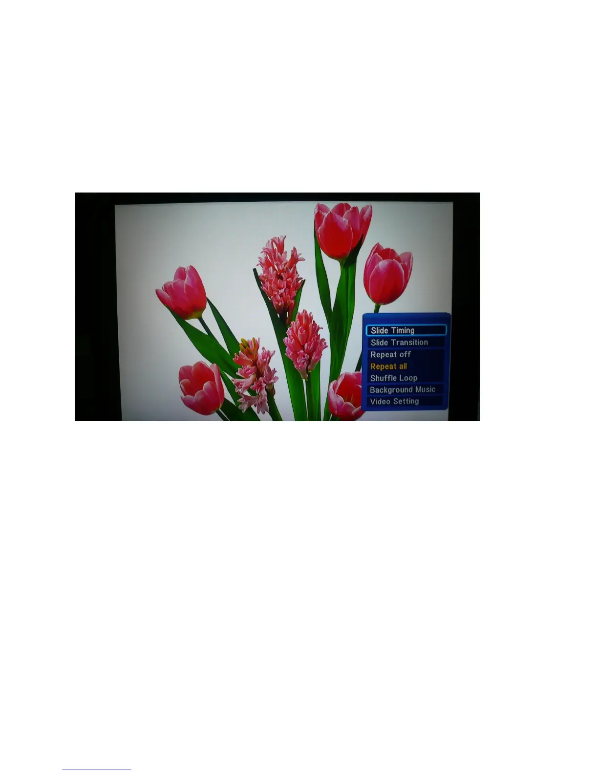 When picture is displaying on the screen, you can set picture playback by pressing