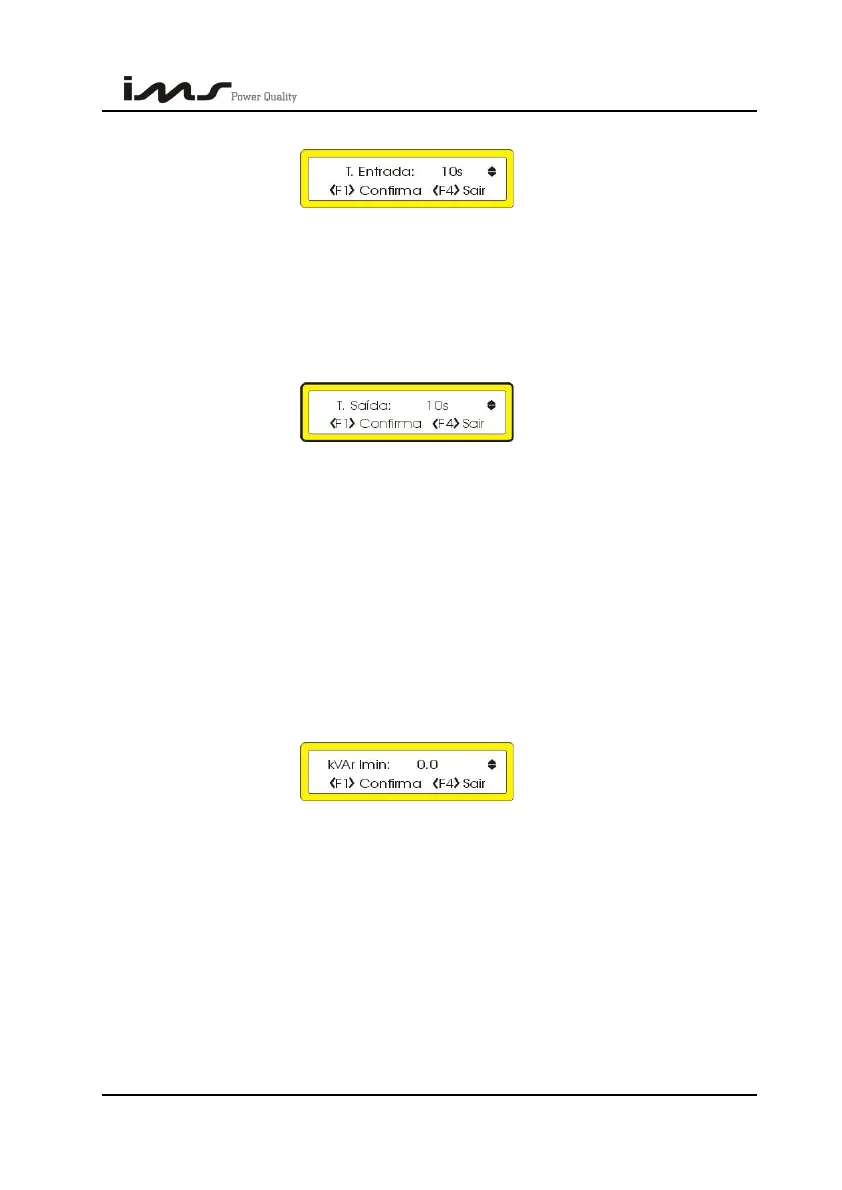 A próxima tela configura o tempo de entrada do banco de capacitores. Este tempo é um
