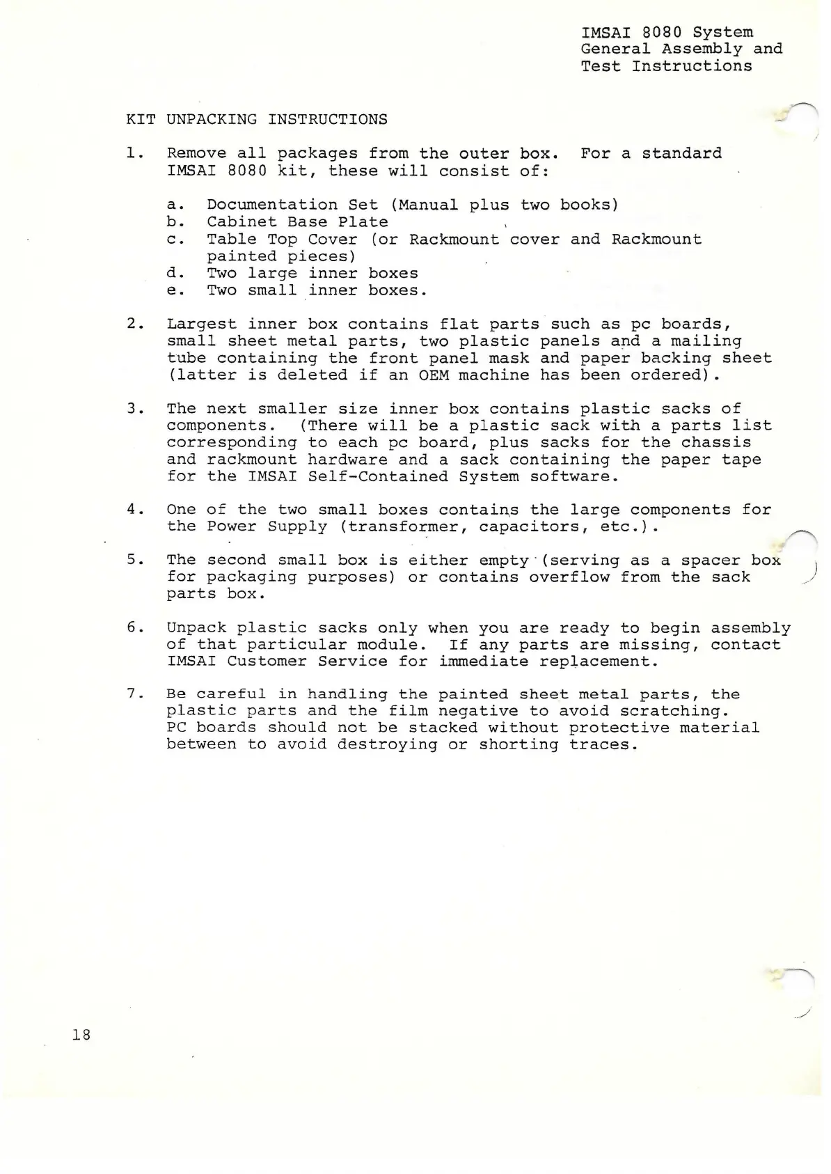 IMSAI 8080 kit, these will consist of: