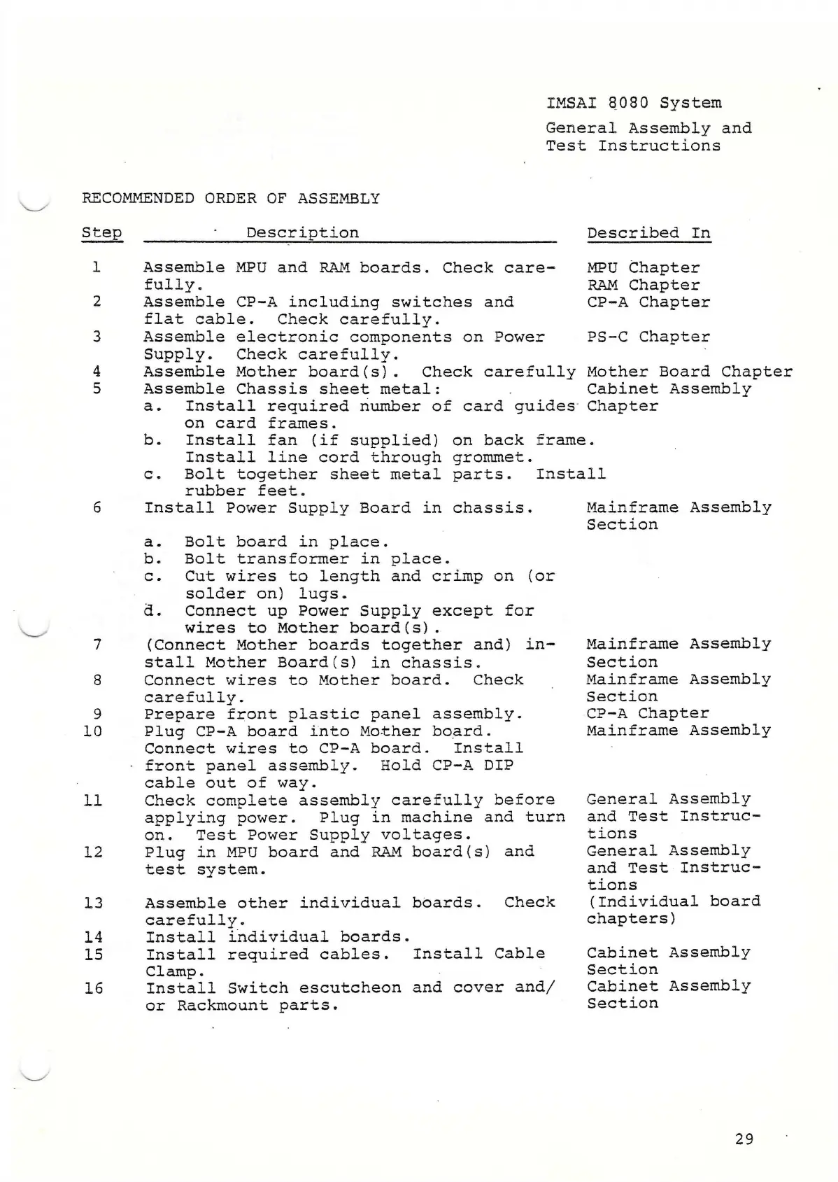 Assemble Mother board(s). Check carefully Mother Board Chapter