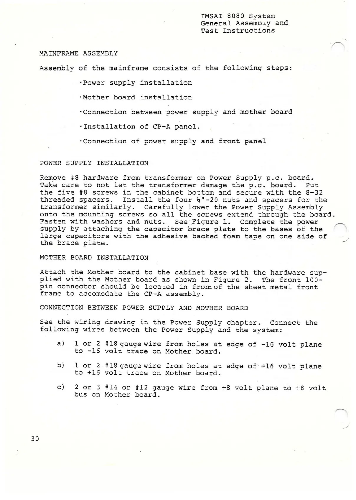 a) 1 or 2 #18 gauge wire from holes at edge of -16 volt plane