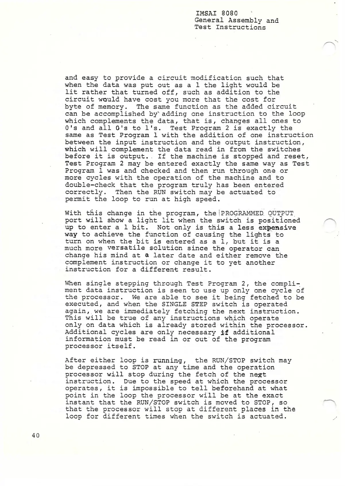 Test Program 2 may be entered exactly the same way as Test
