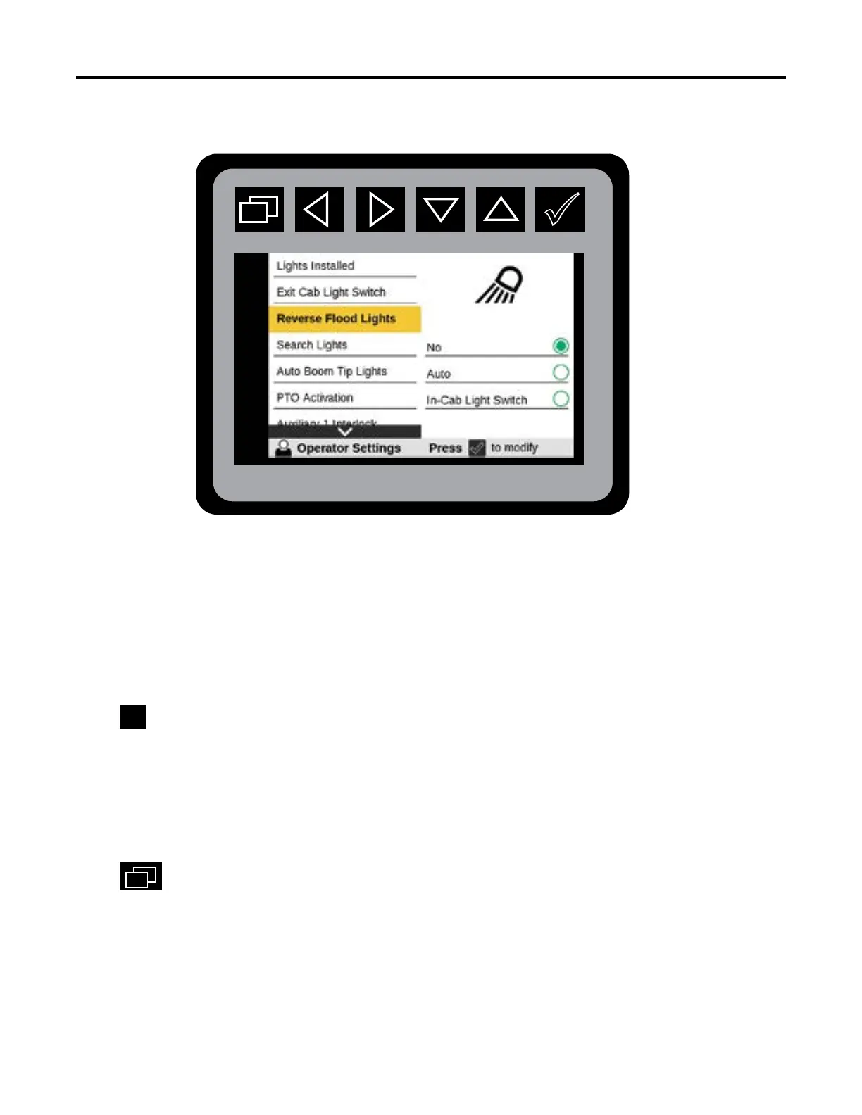 The Reverse Flood Lights menu will not be shown if the Reverse Lights Enabled is set to NO.