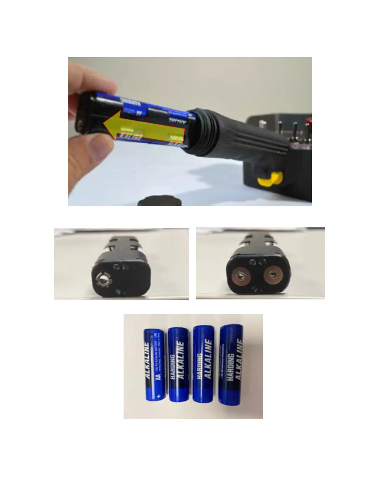 3. Insert four fresh “AA” alkaline cell batteries into the battery caddy, observing the proper