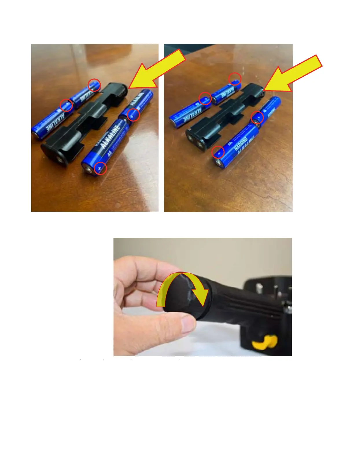 4. Reinsert the battery caddy into the handle with the dual contact end going into the handle rst.