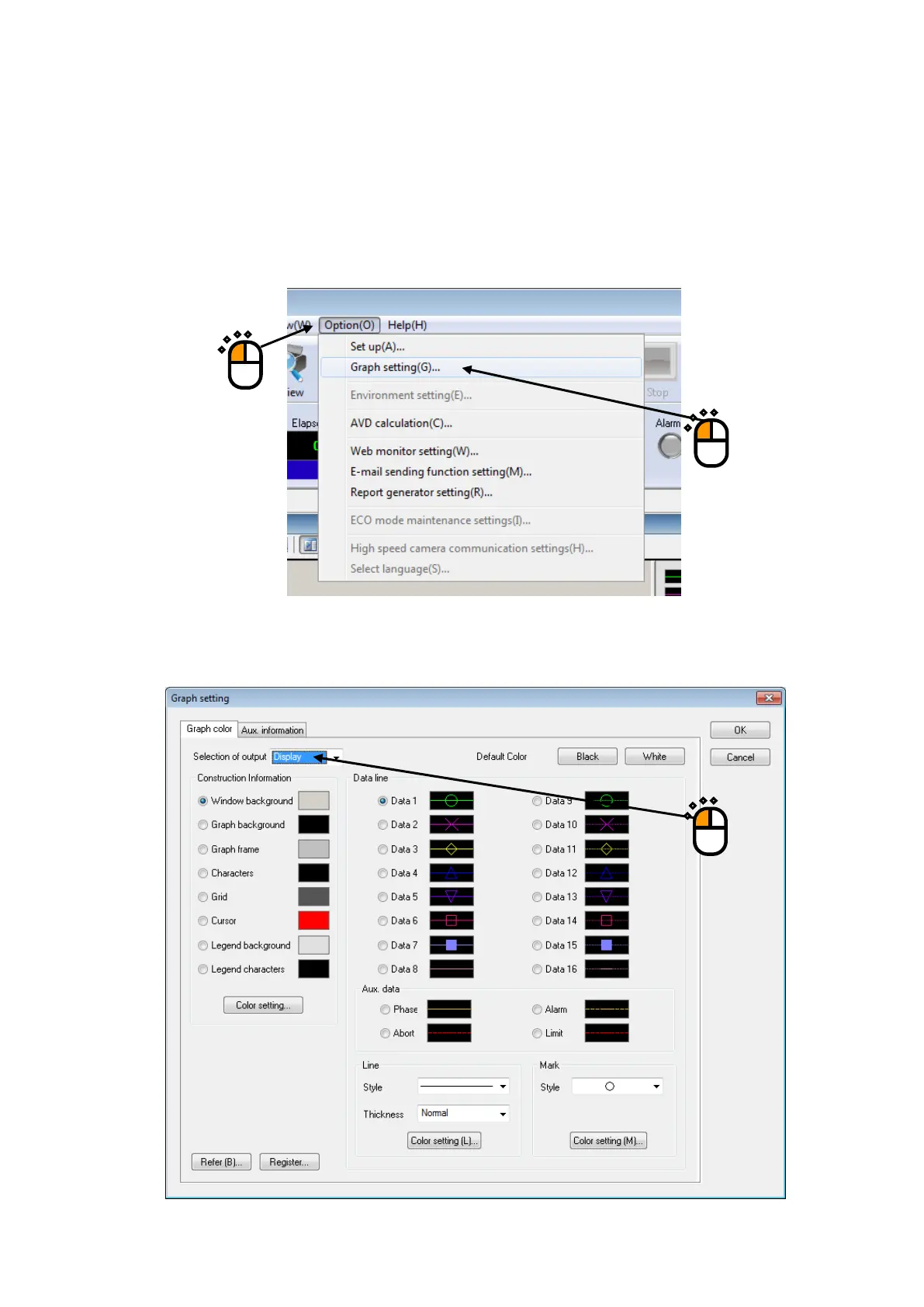 Select “Option” in the menu bar and click “Graph setting” among the items.