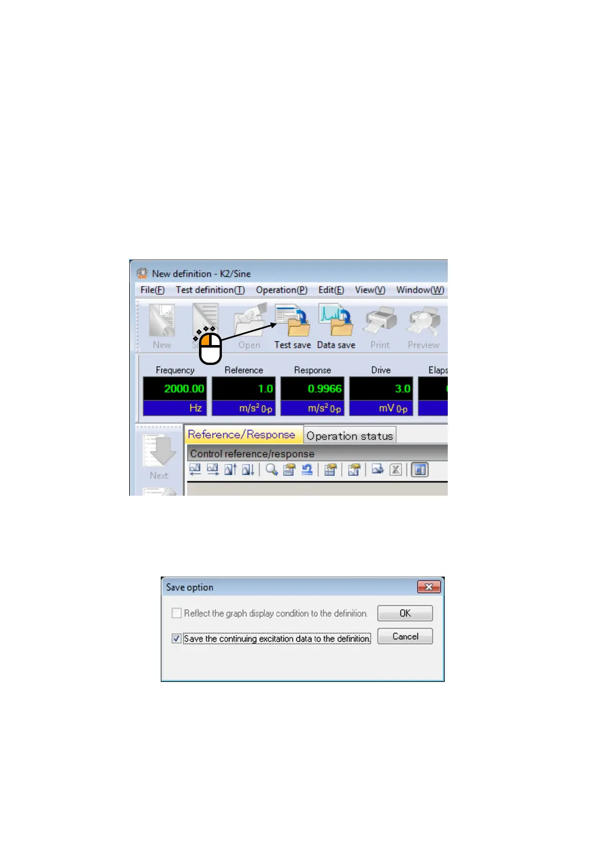 Press the icon of [Save] in the state at excitation completed. A dialog box as below appears if