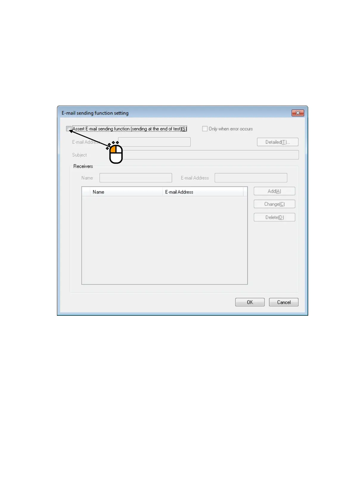 Check the check box of ‘Assert E- mail sending function(sending a e-mail)’.