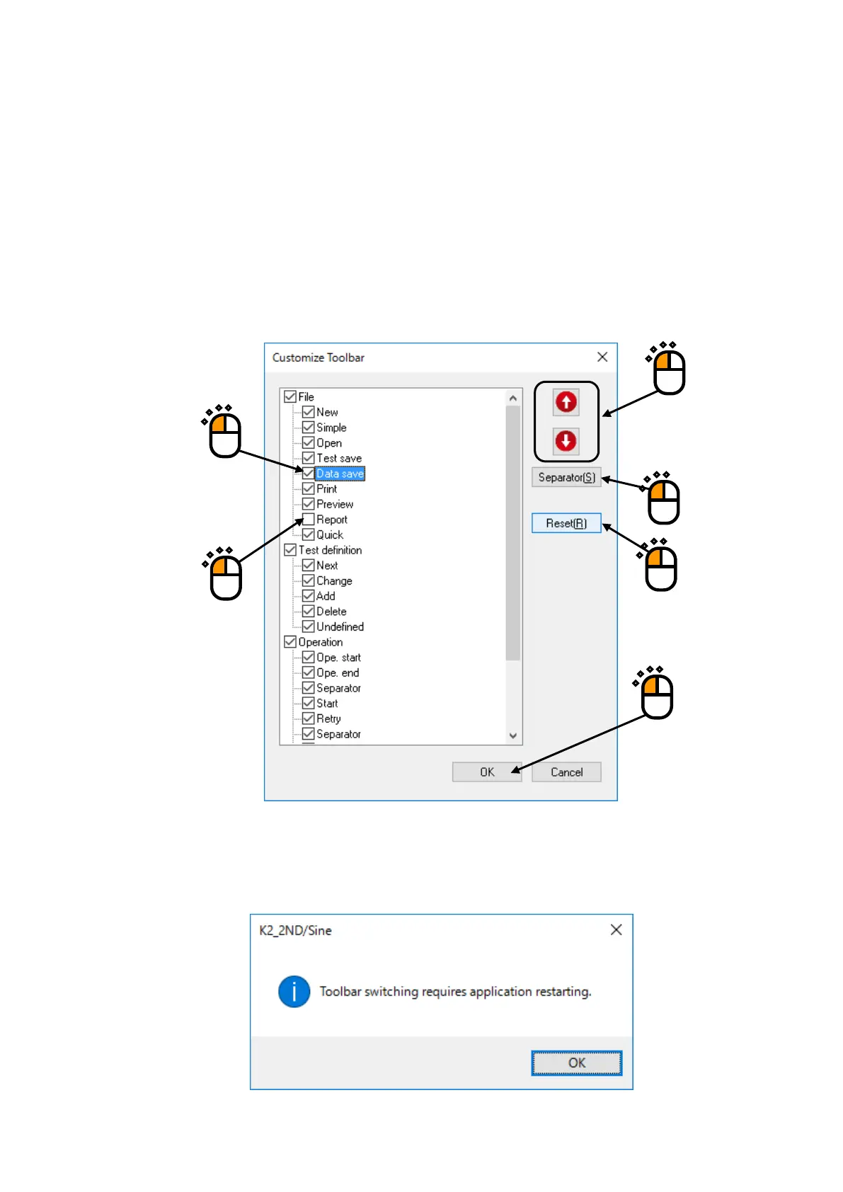 Message shown below appears. After the application is rebooted, display of tool bar is changed.