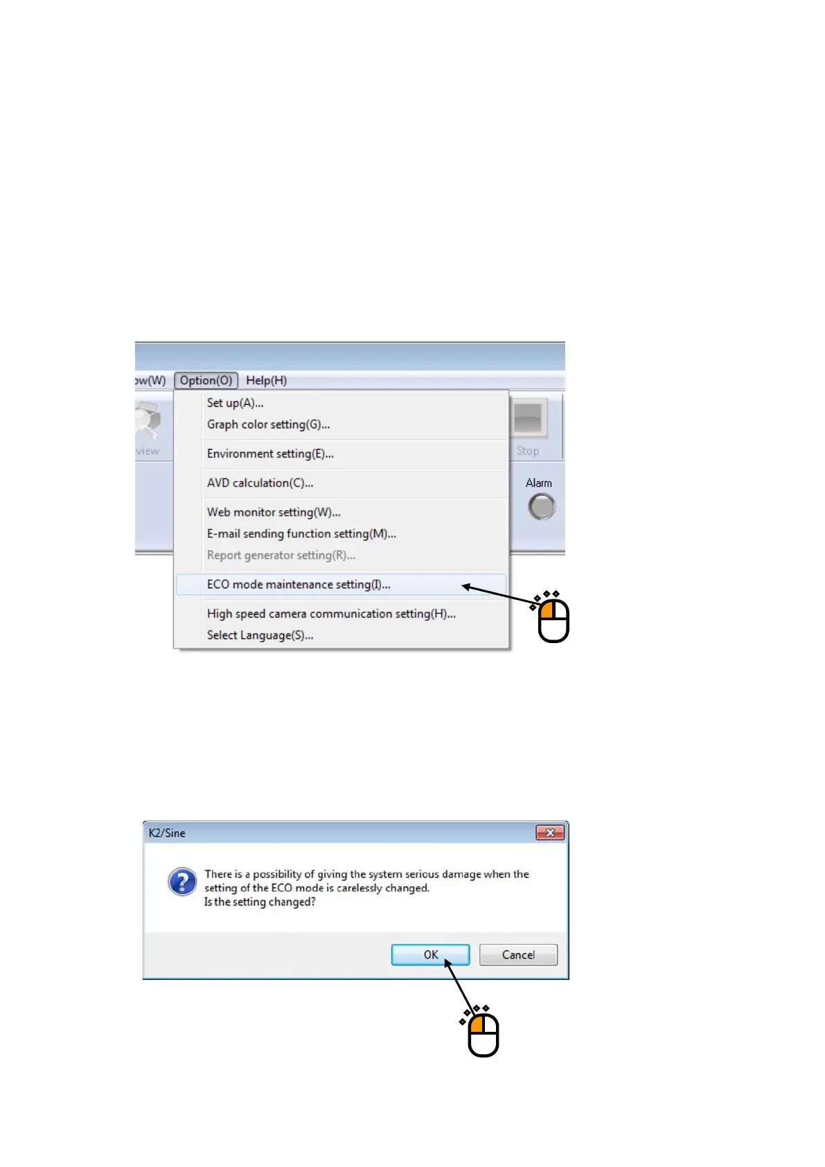 “Option” is selected from the Menu bar, and “ECO mode maintenance setting” is clicked.
