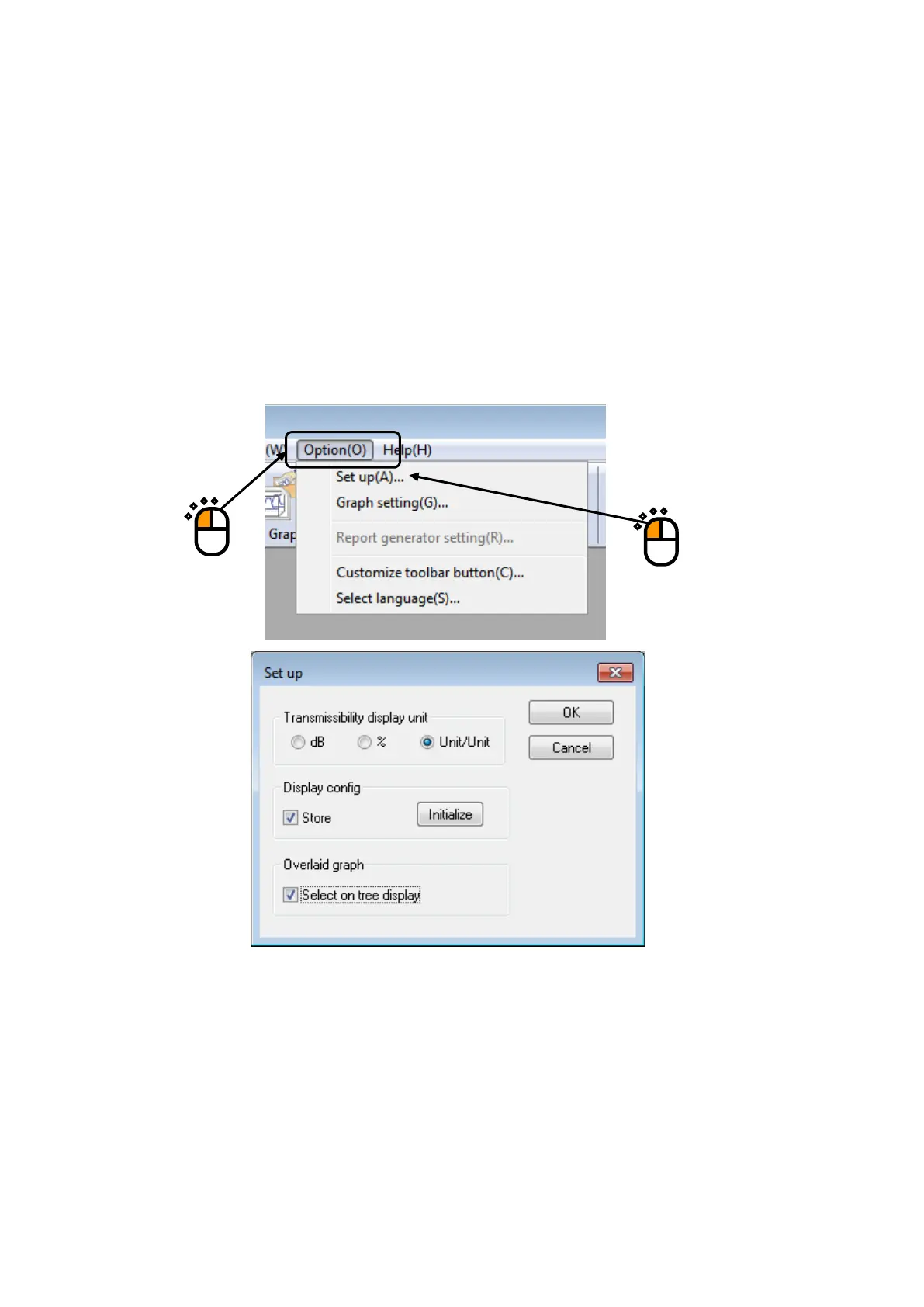 Select “Option” in the menu bar and click “Set up”. A dialog of ‘Set up’ appears.