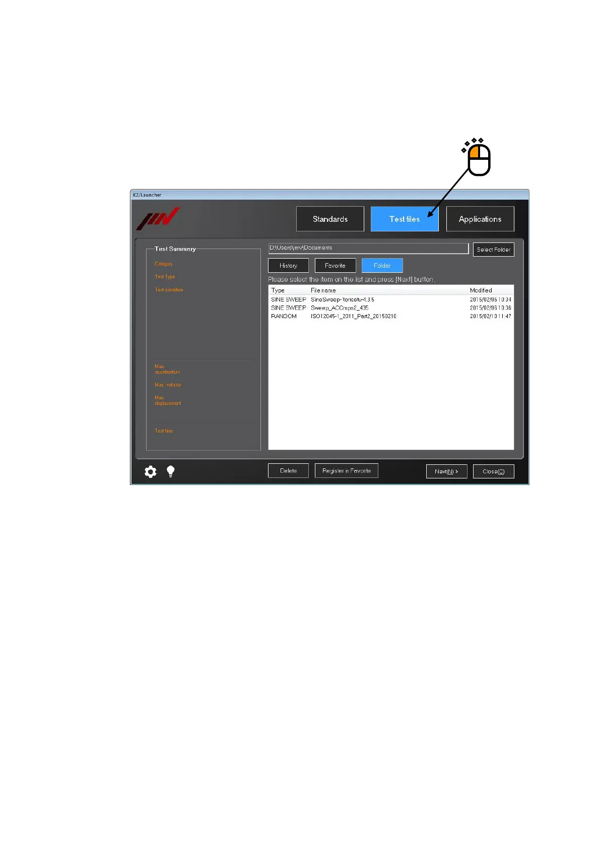 Press the button of [Test files].
