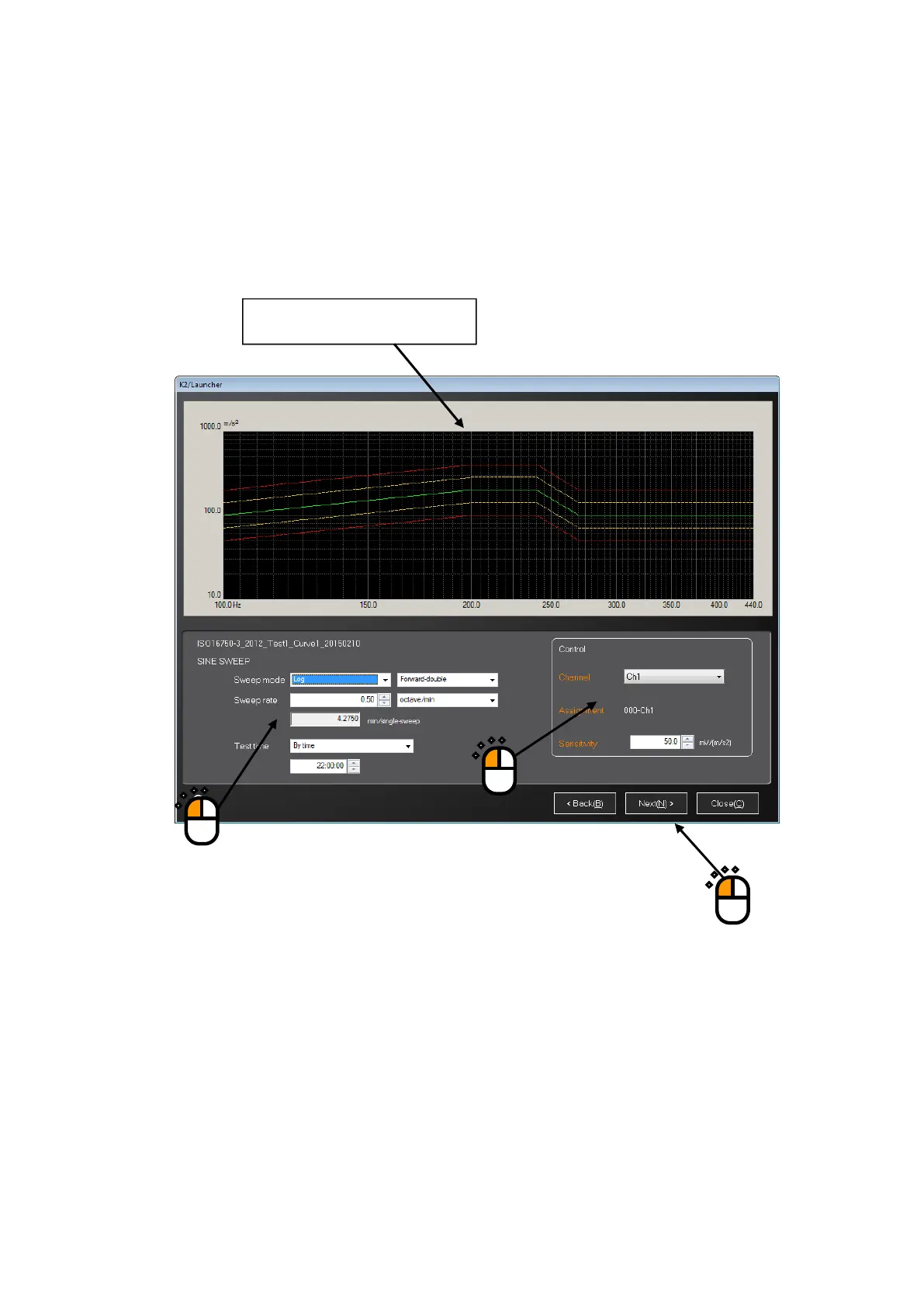 This example shows the test type of SINE SWEEP.