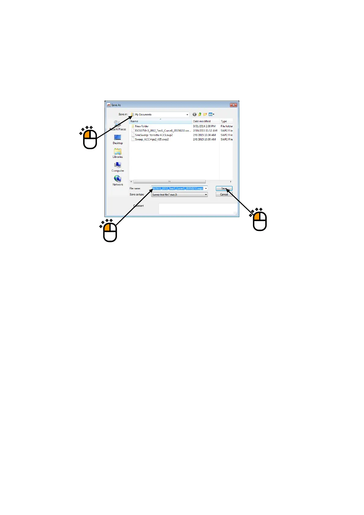 Select the save location folder, enter file name, and press the button of [Save].
