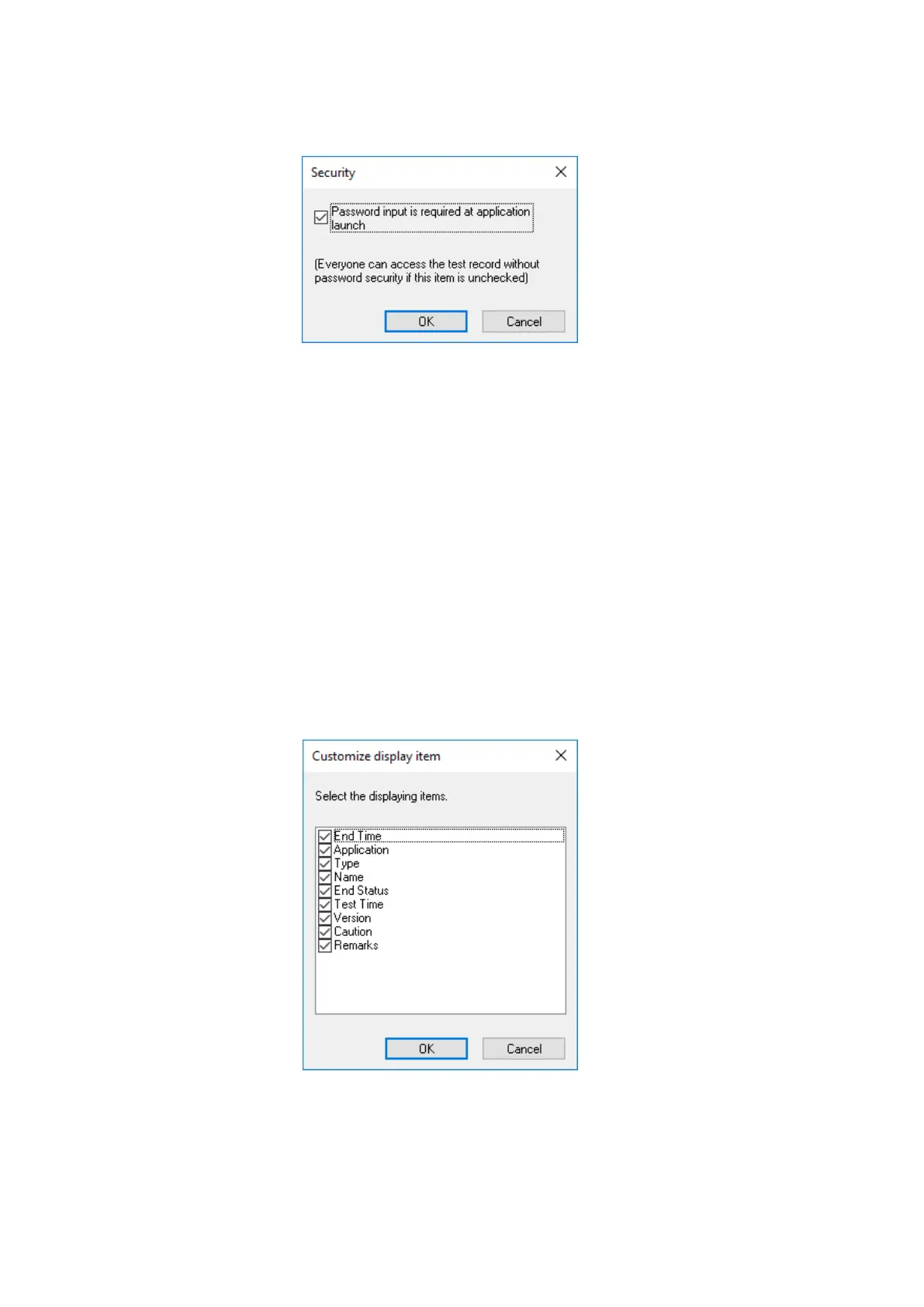 Whether input password is checked or not at startup of the Test Record Viewer can be set.