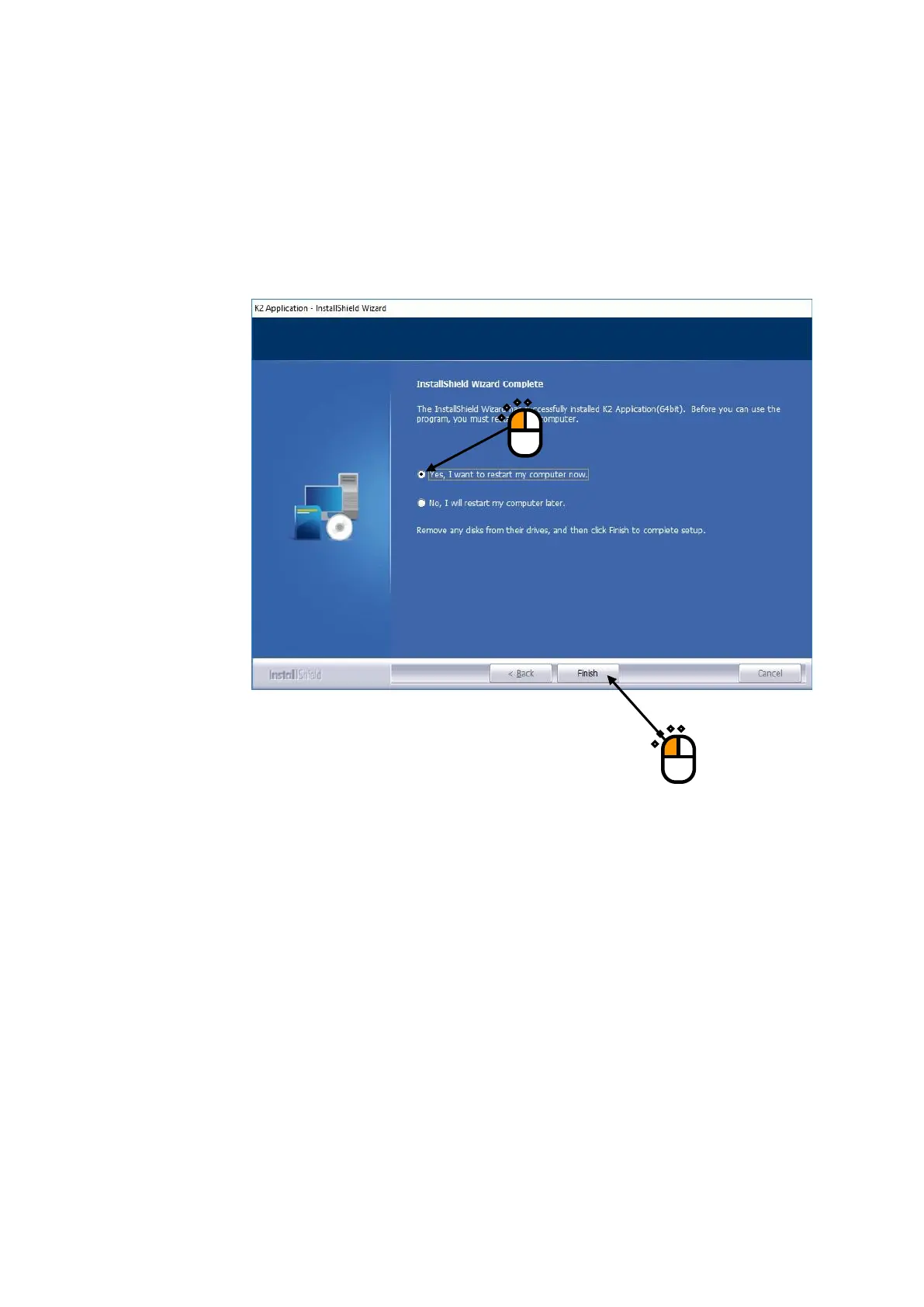 Select the message of ‘Yes, I want to restart my computer now’, and press the button of