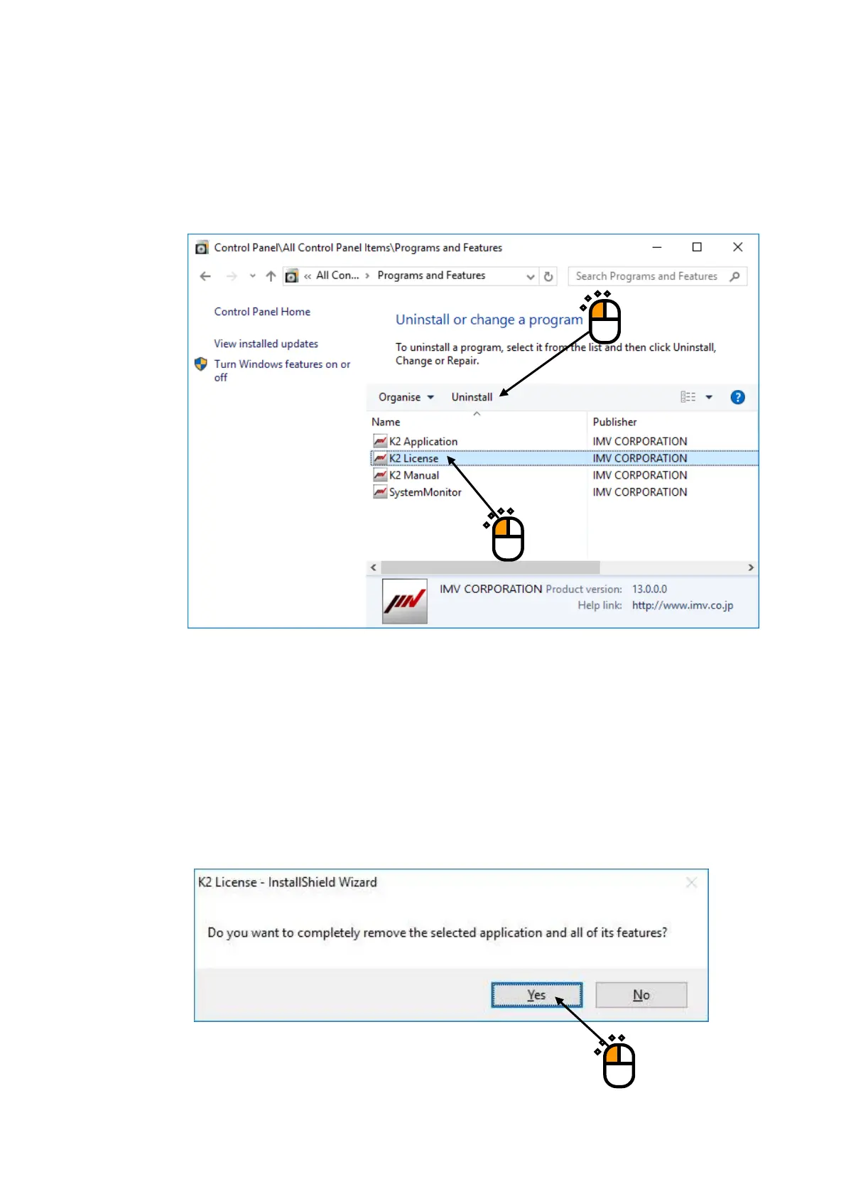 IMV K2 - Uninstallation of License
