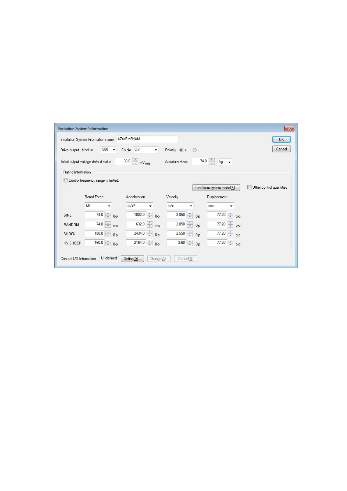 This item is for inputting of the registration name of the excitation system (shaker + amplifier)