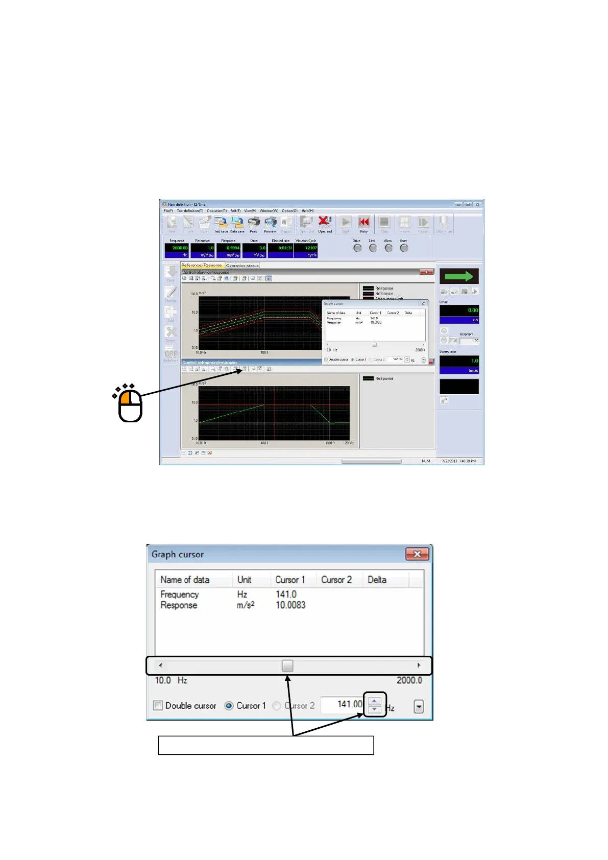 Right-click the mouse button on the graph or click the “cursor button” to display the cursor in the