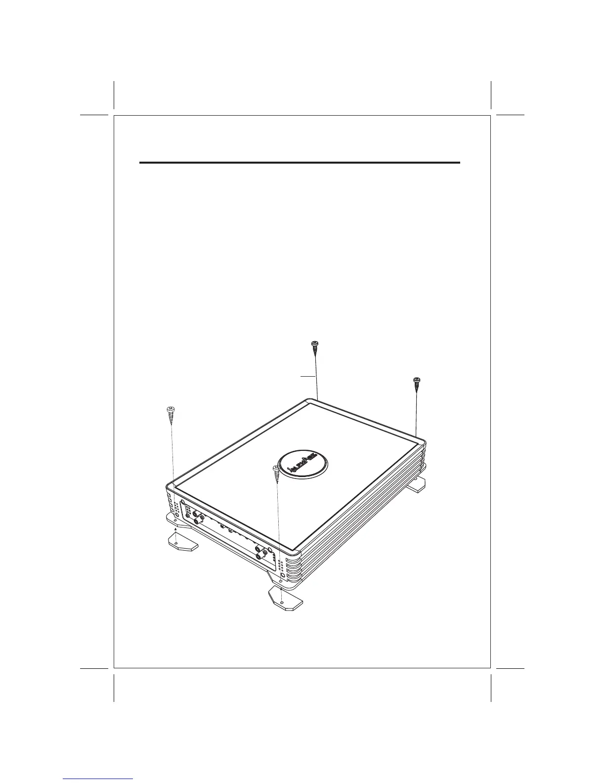 5. Montez l'amplificateur en utilisant les 4 vis auto taraudeuses fournies.